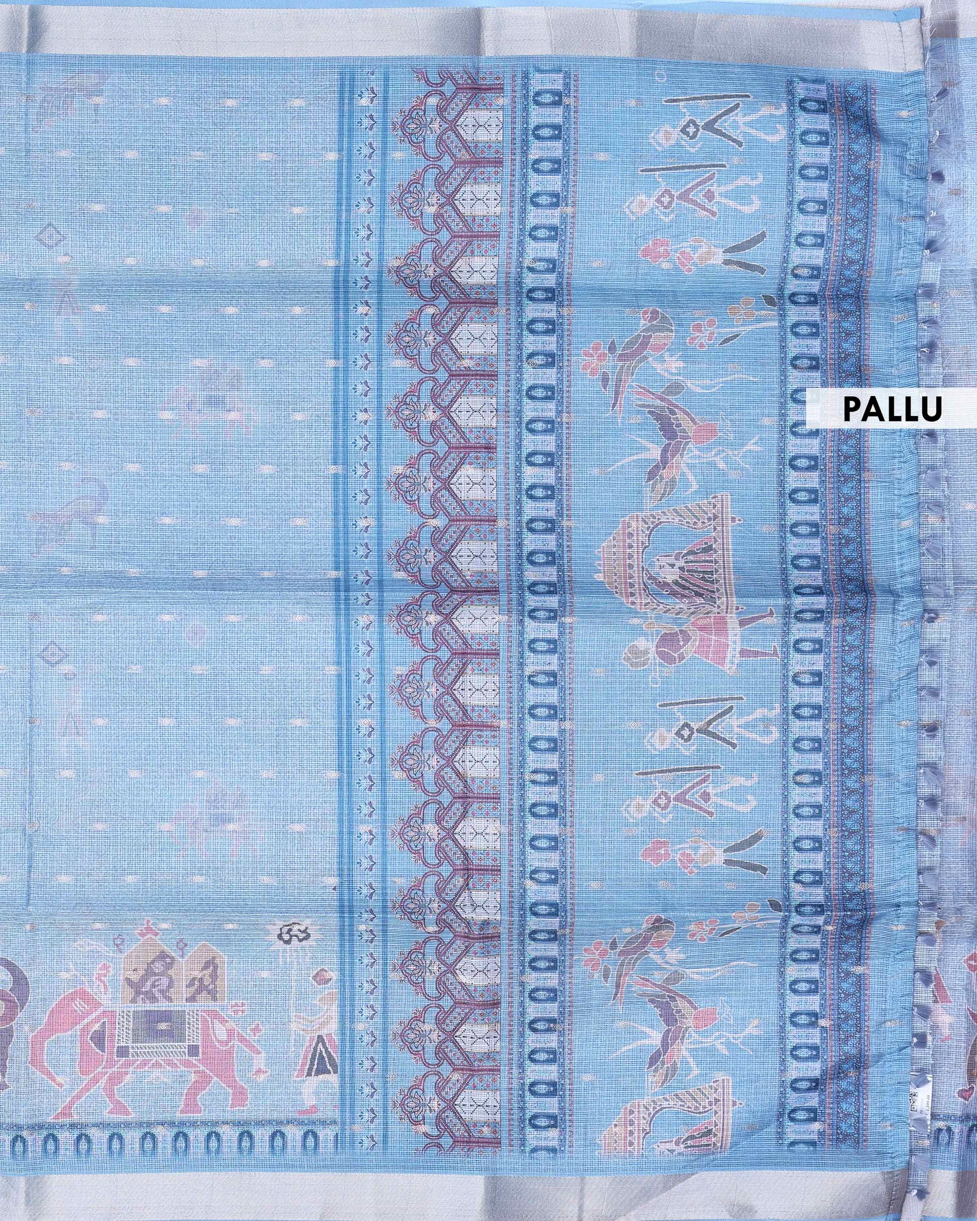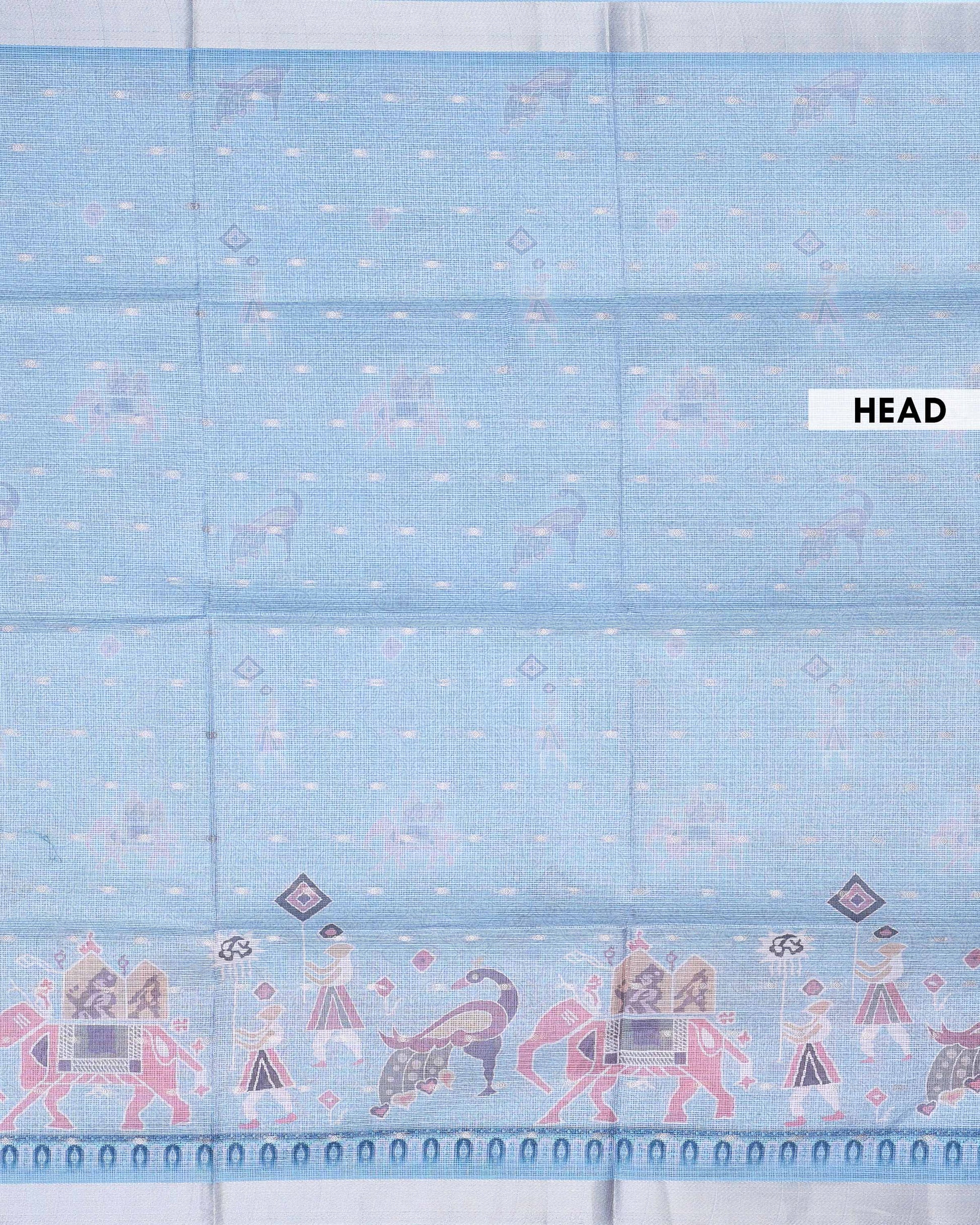 Elegant Handloom Kota Saree with Heritage Animal Motifs and Classic Woven Border - Light Blue