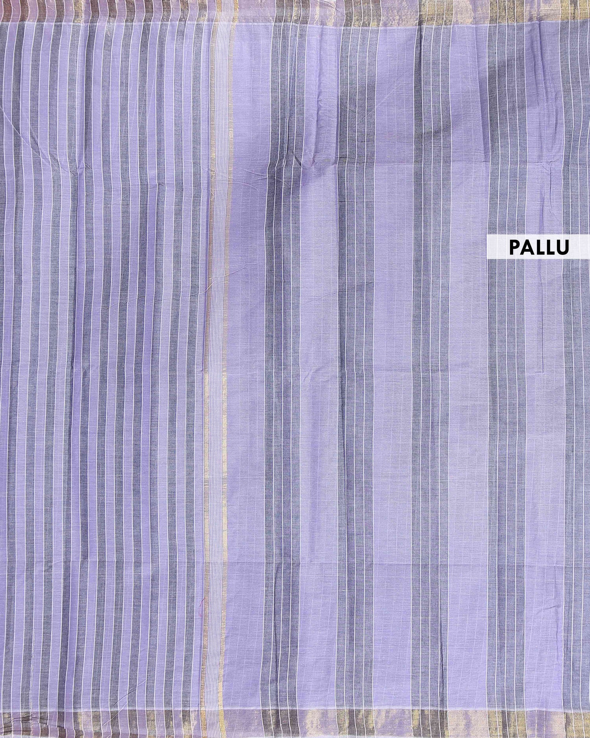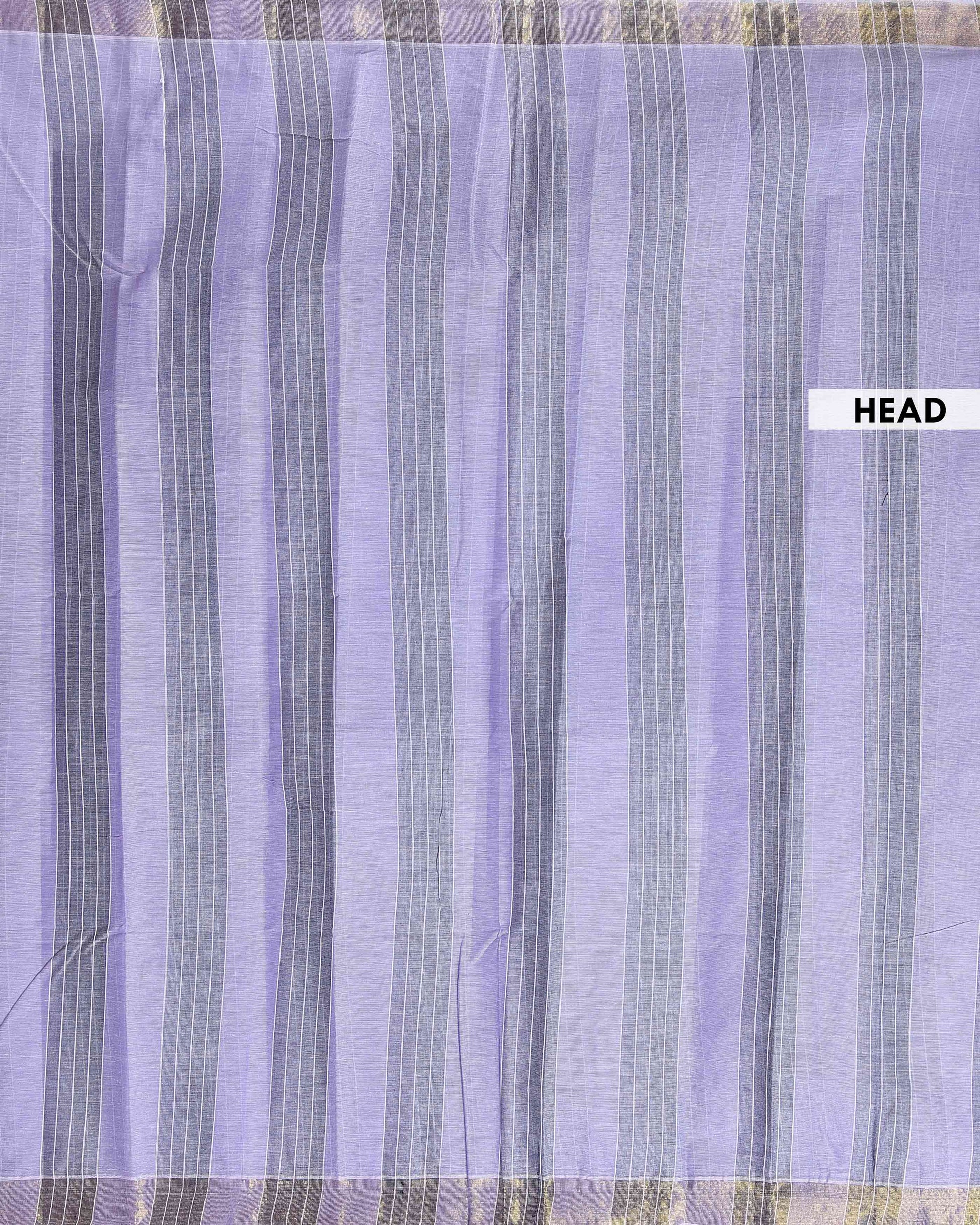 Elegant Handloom Kovai Cotton Saree with Woven Stripes and Zari Border - Lavender