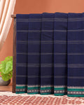 Elegant Handloom Narayanpet Cotton Saree Contrast Border and Fine Stripe Details - Navy Blue