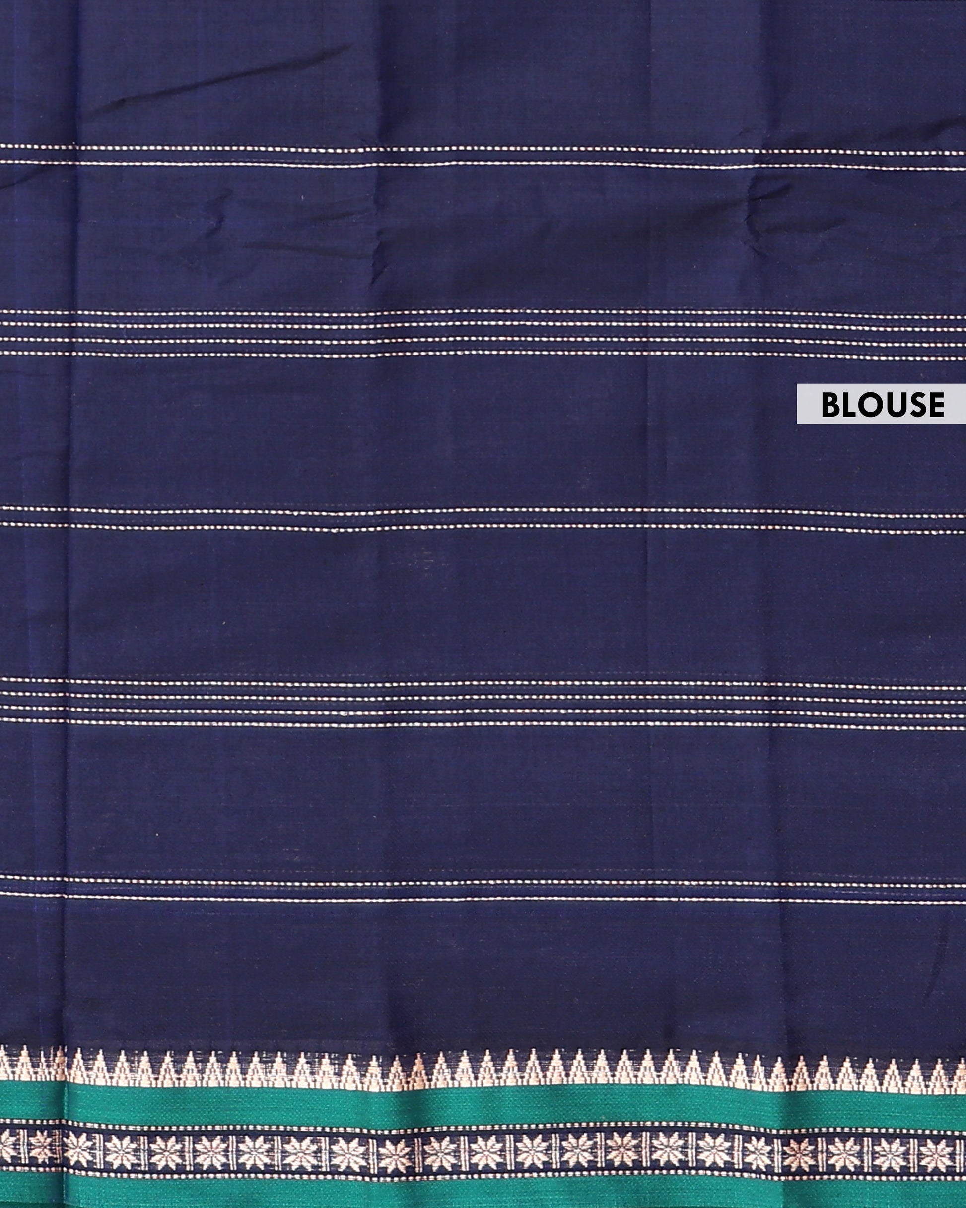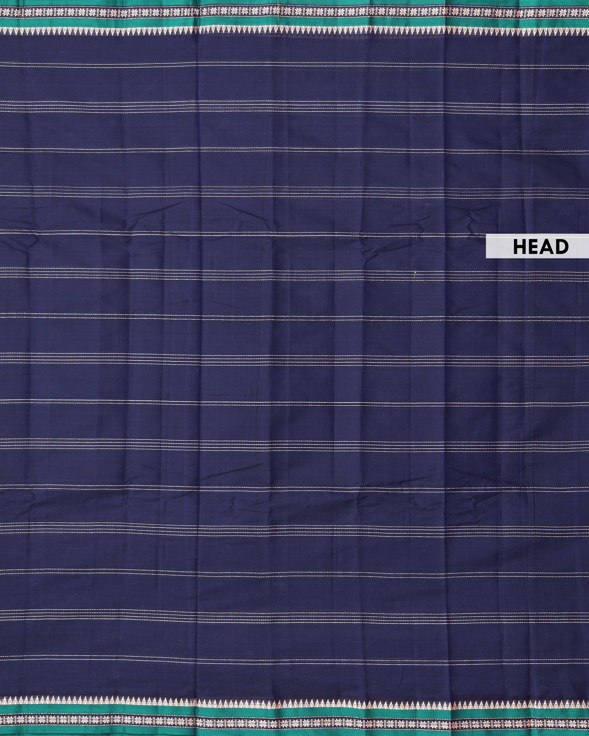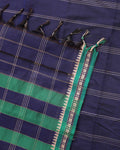 - Elevate ethnic style with this exquisite Navy Blue handloom Narayanpet cotton saree a contrasting green border with classic temple motifs