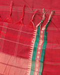 Elegant Handloom Narayanpet Cotton Saree Contrast Border and Fine Stripe Details - Red