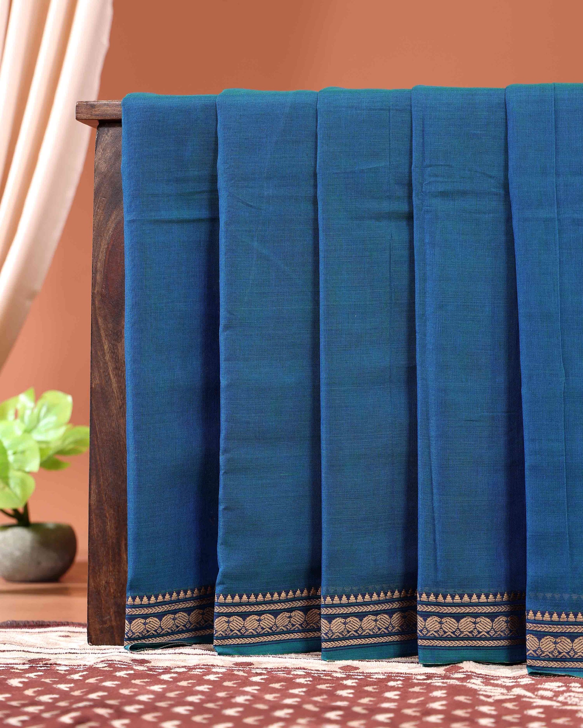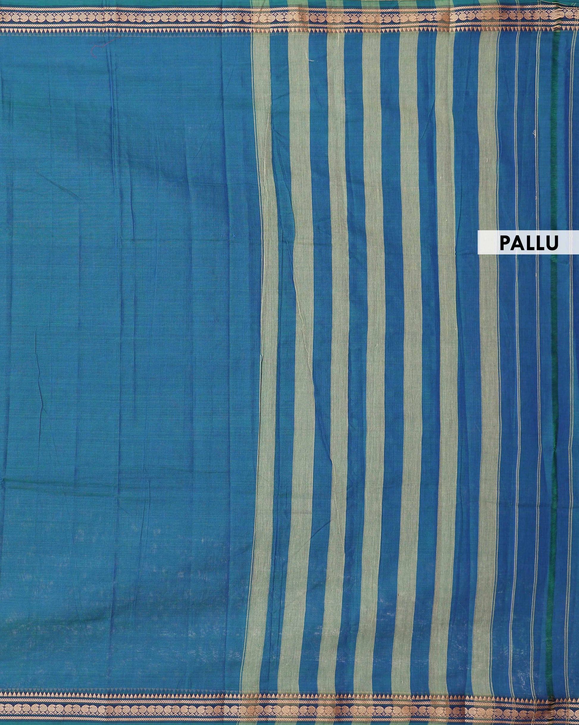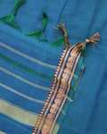 - Experience the timeless elegance of this handloom Narayanpet cotton saree a peacock blue and intricate woven border details.