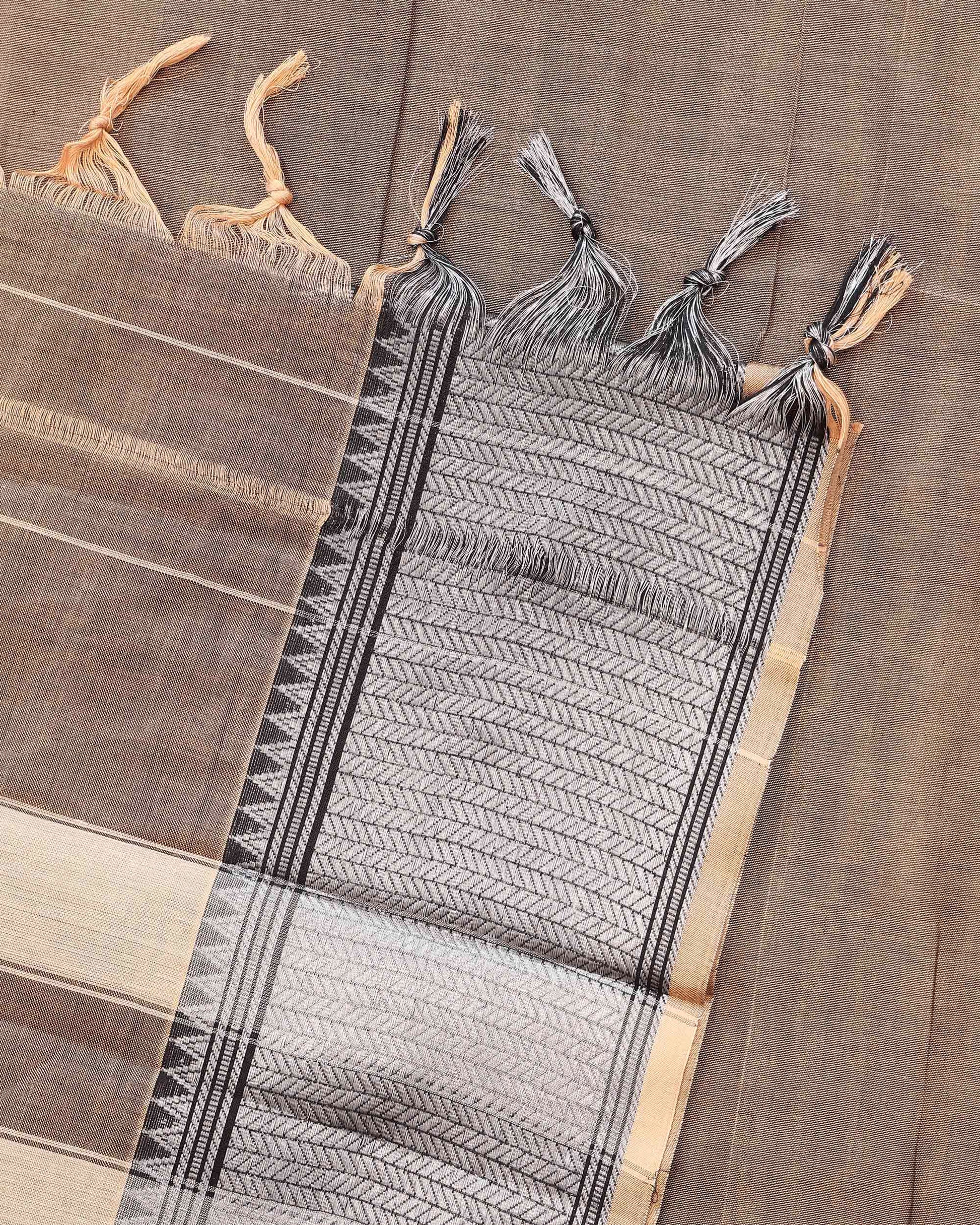 - Indulge in the understated elegance of this handloom Narayanpet cotton saree a Brown body with a striking contrast black border.