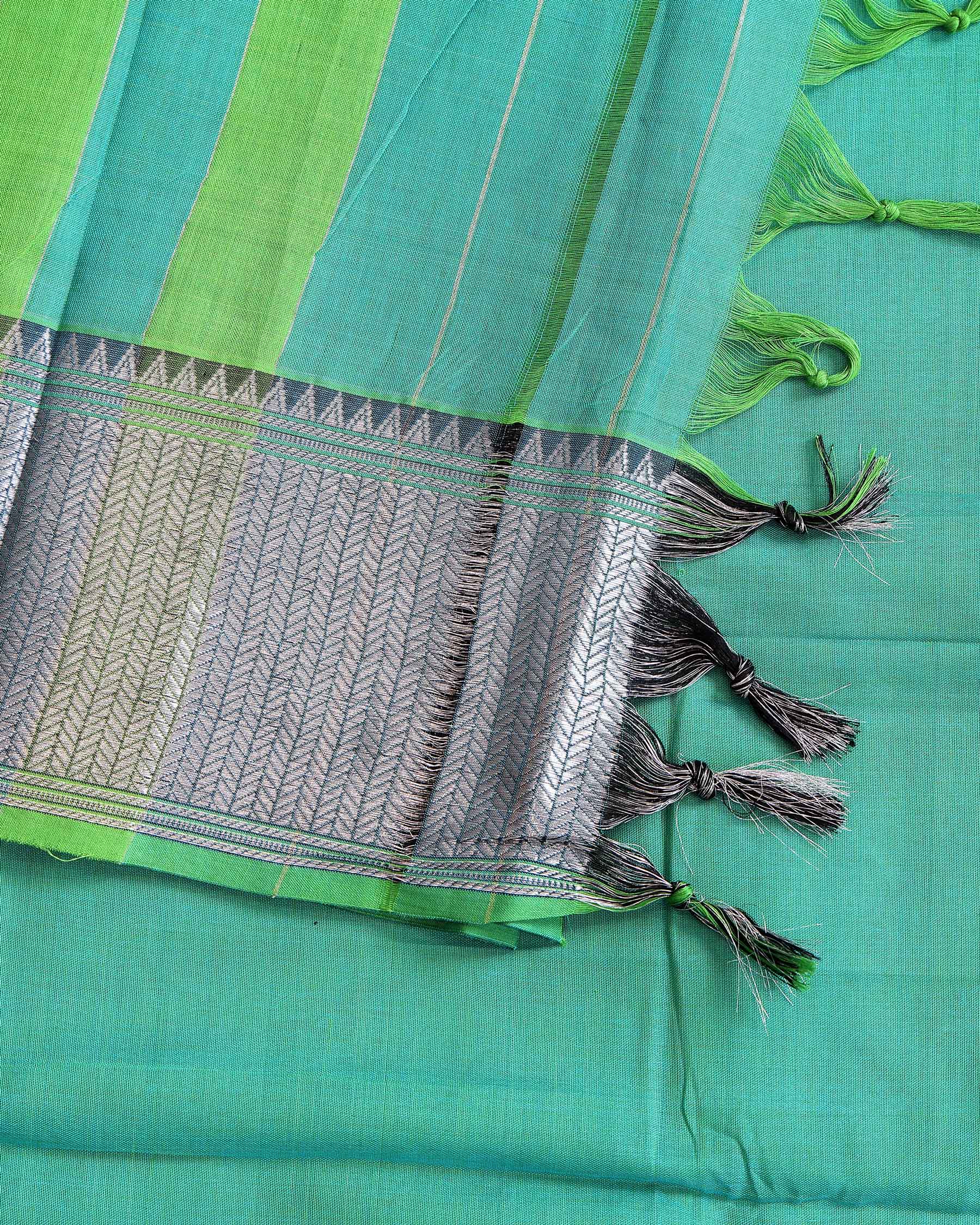 - Indulge in the understated elegance of this handloom Narayanpet cotton saree a Green body with a striking contrast black border.