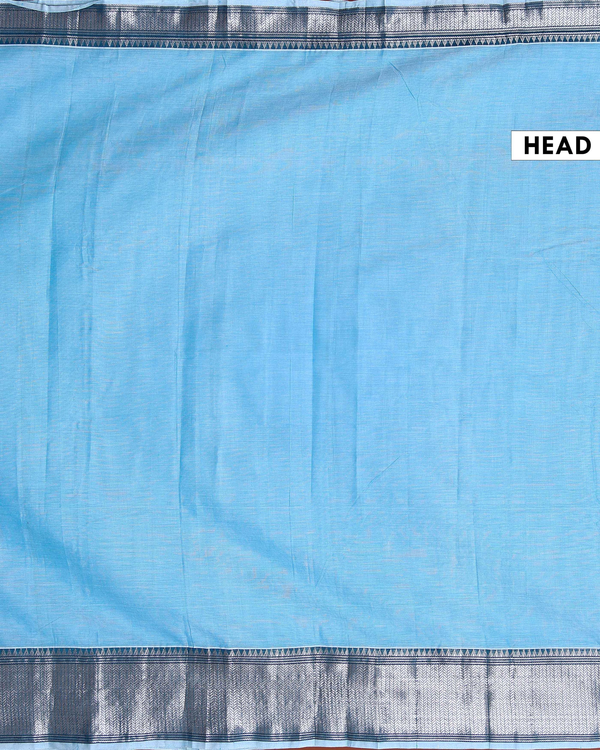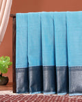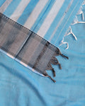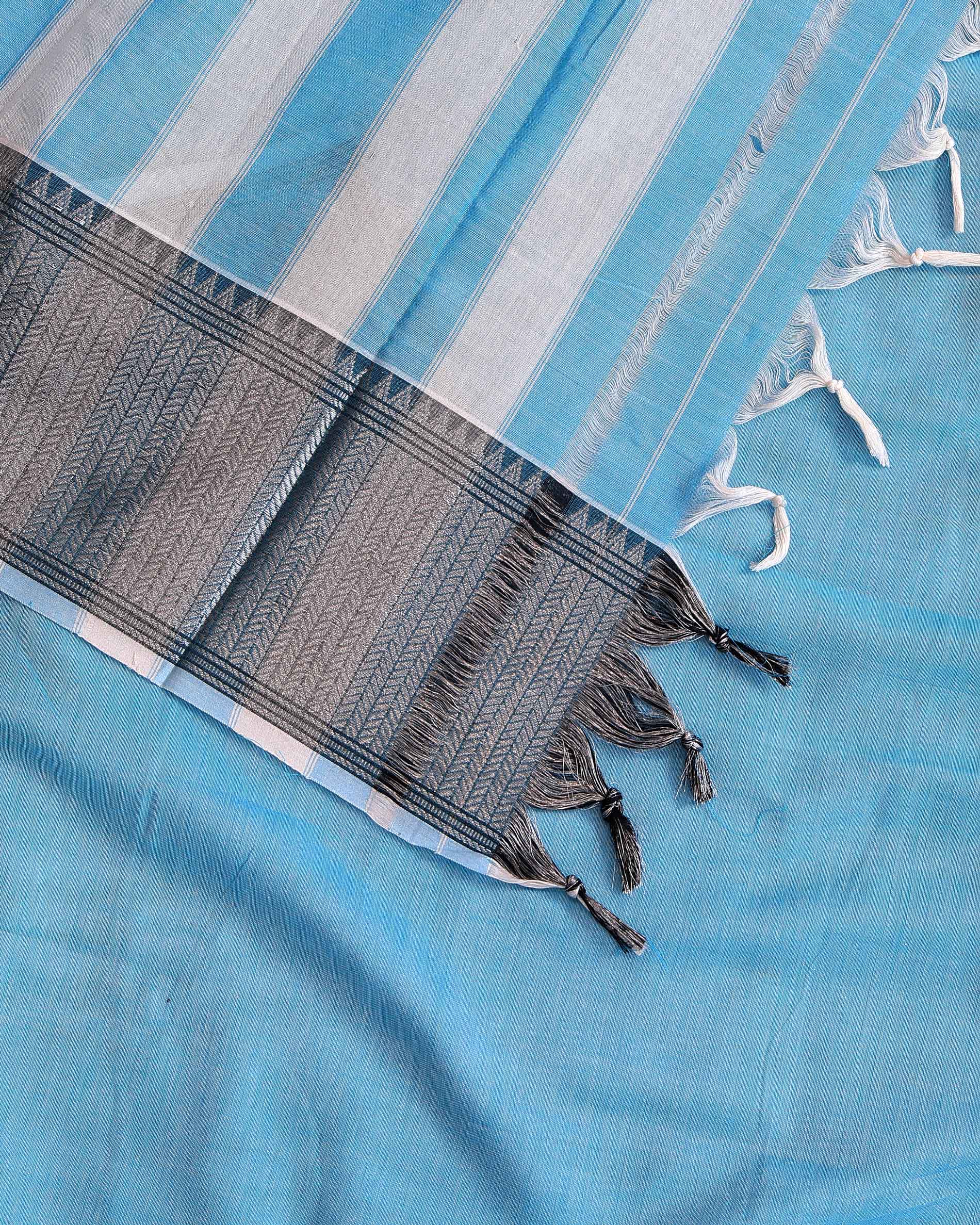 - Indulge in the understated elegance of this handloom Narayanpet cotton saree a Sky Blue body with a striking contrast black border.