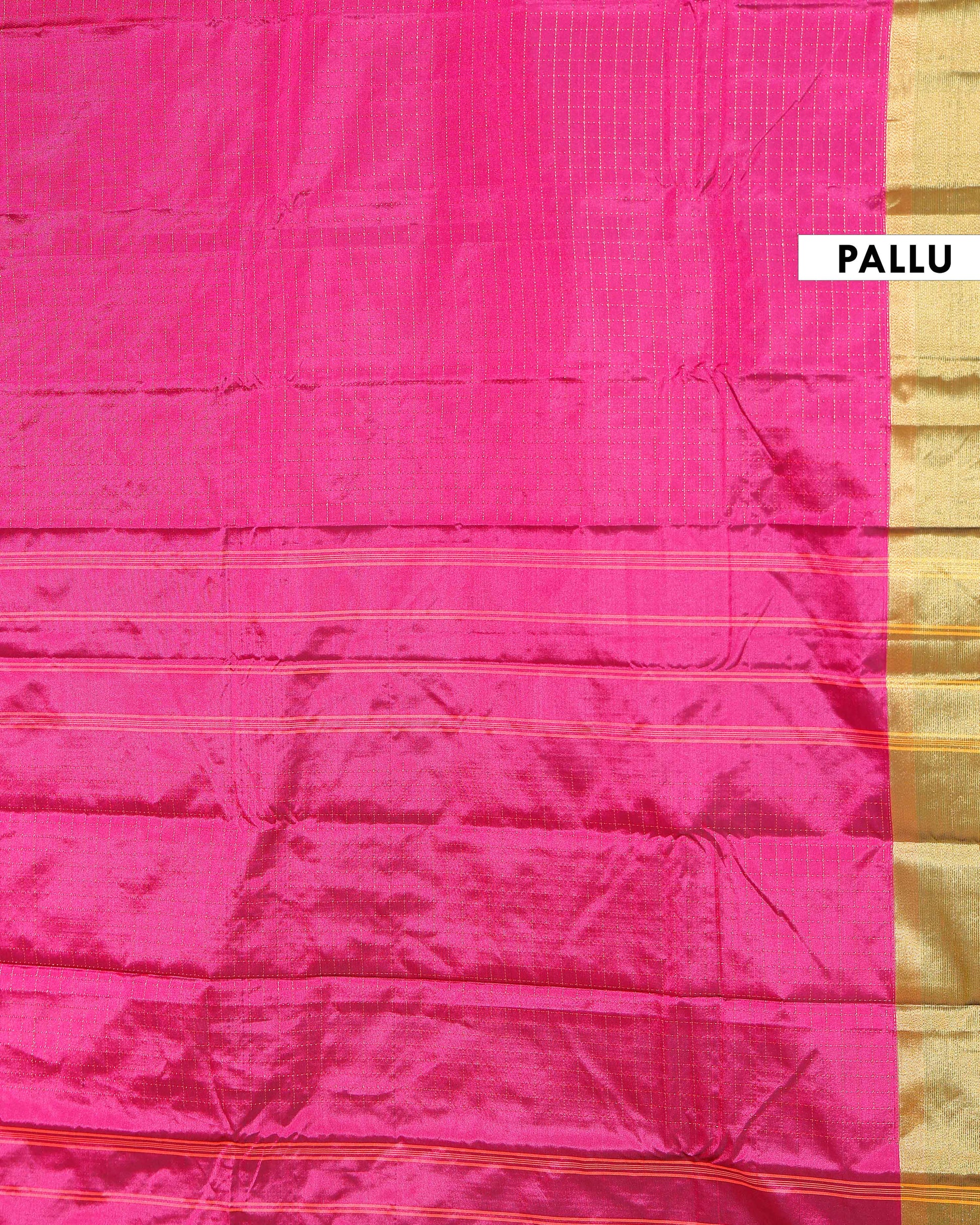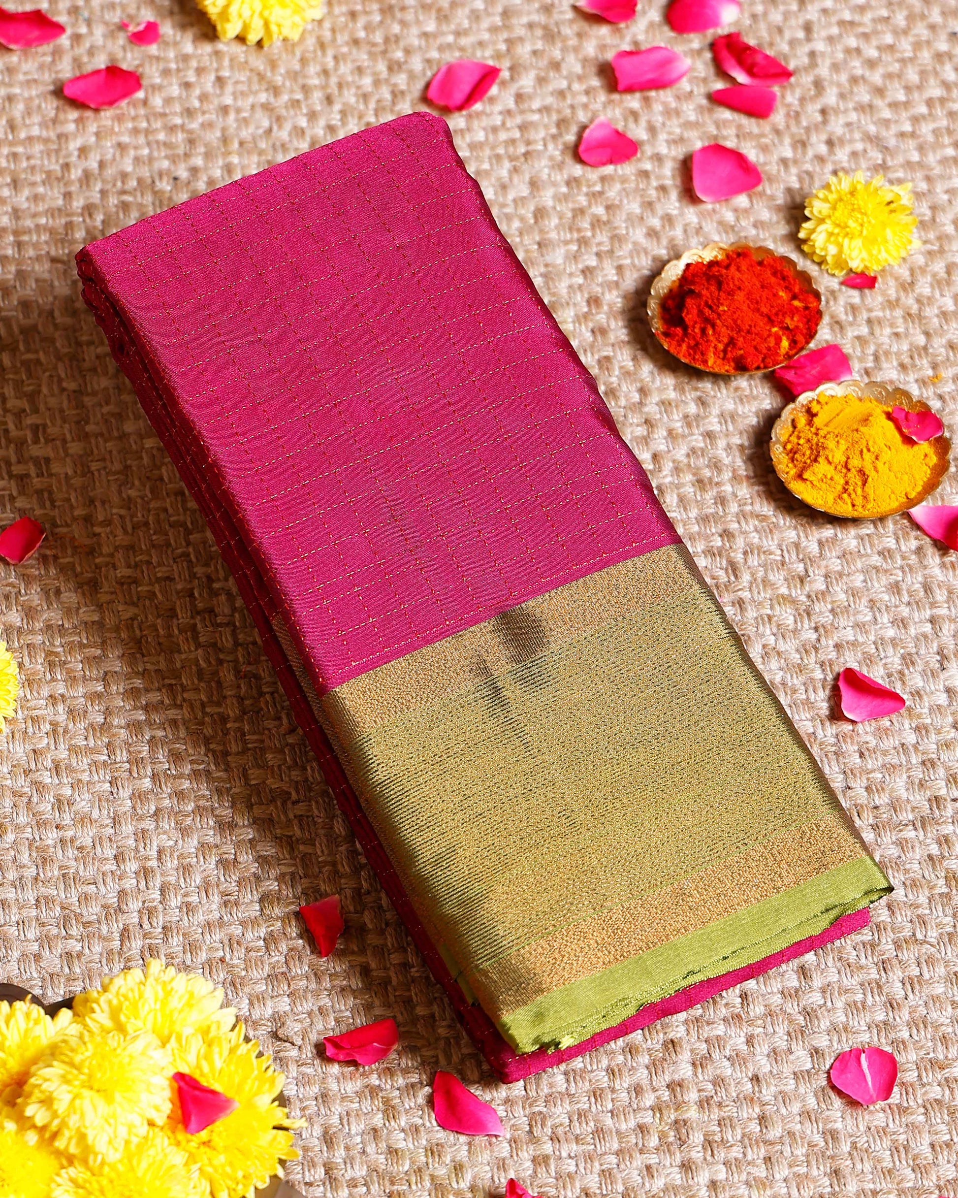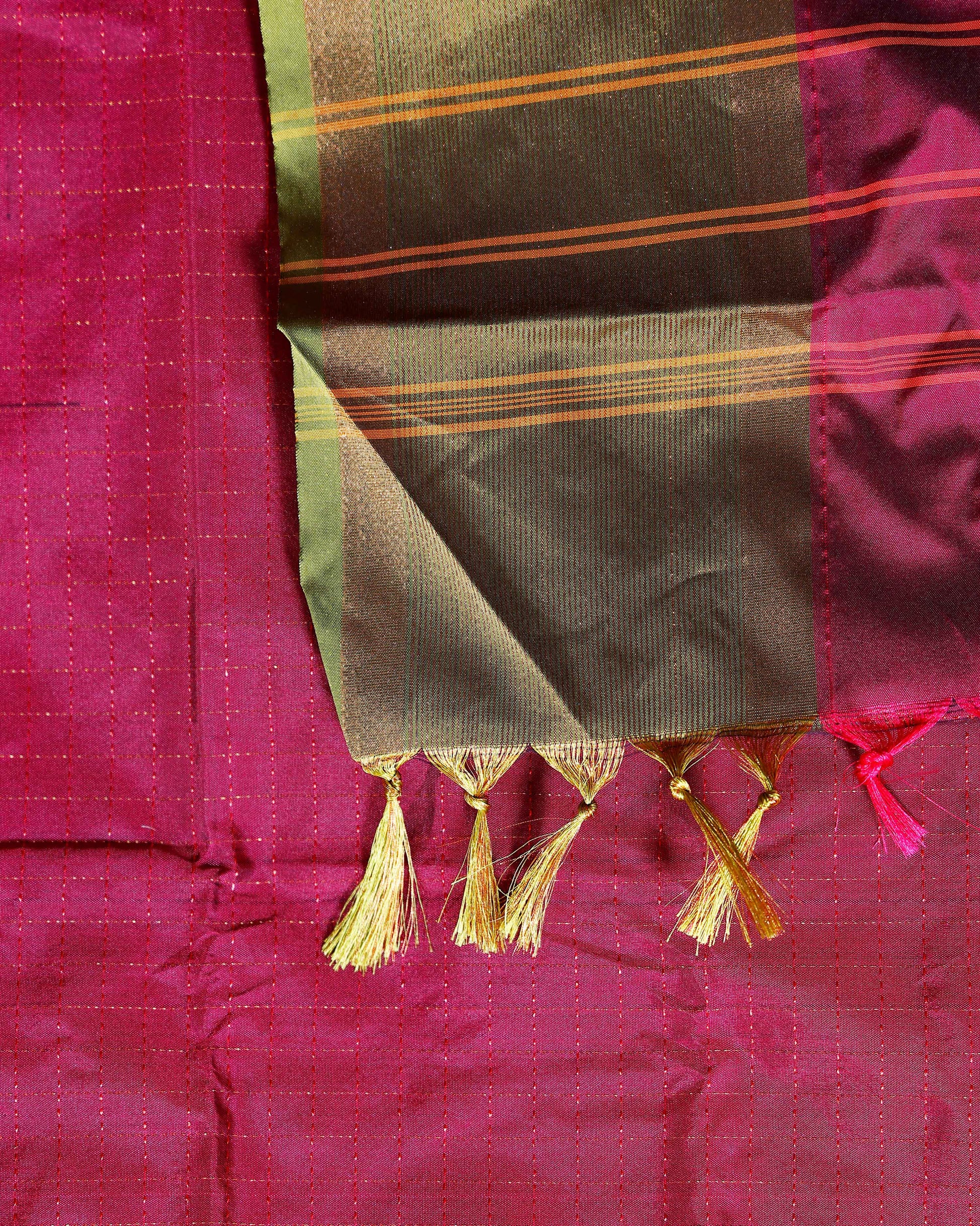 Elegant Soft Silk Saree with Woven Checks and Contrast Border - Purple