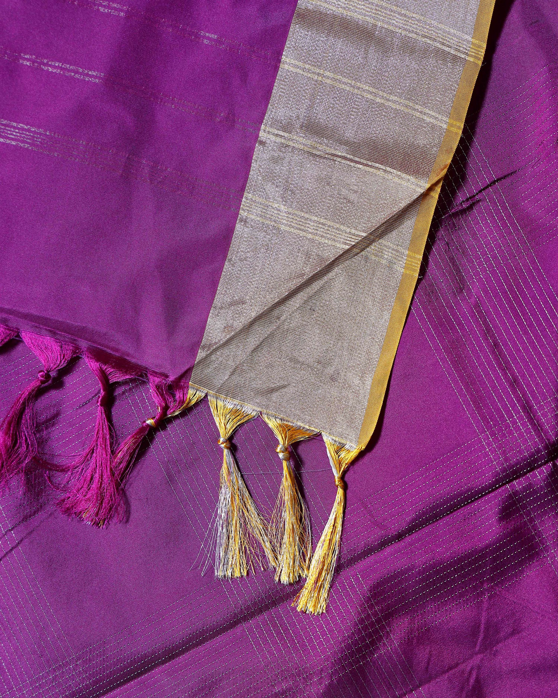 Elegant Handloom Soft Silk Saree with Zari Checks and Traditional Border - Purple