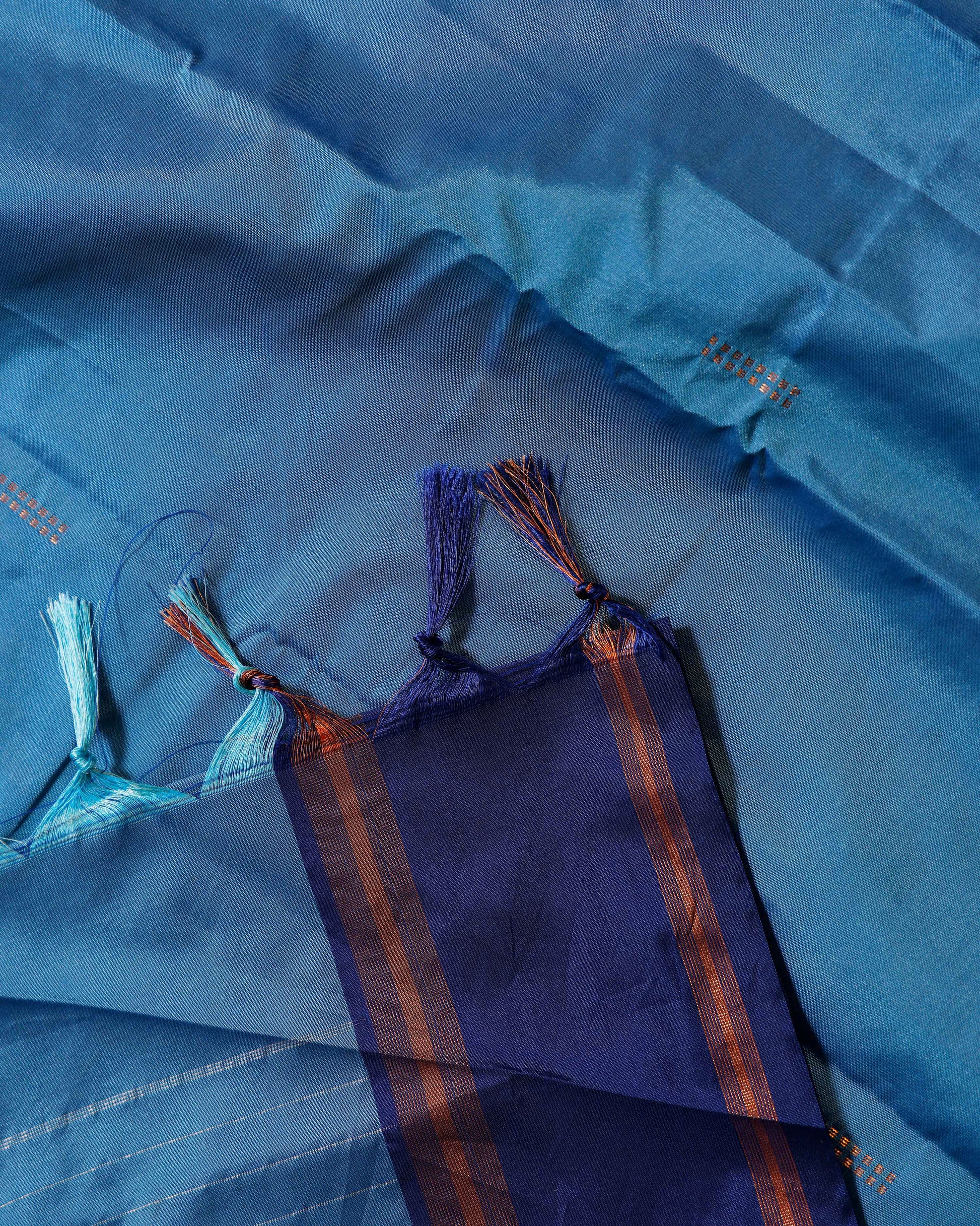 Elegant Soft Silk Saree with Intricate Zari Weave & Temple Border - Blue