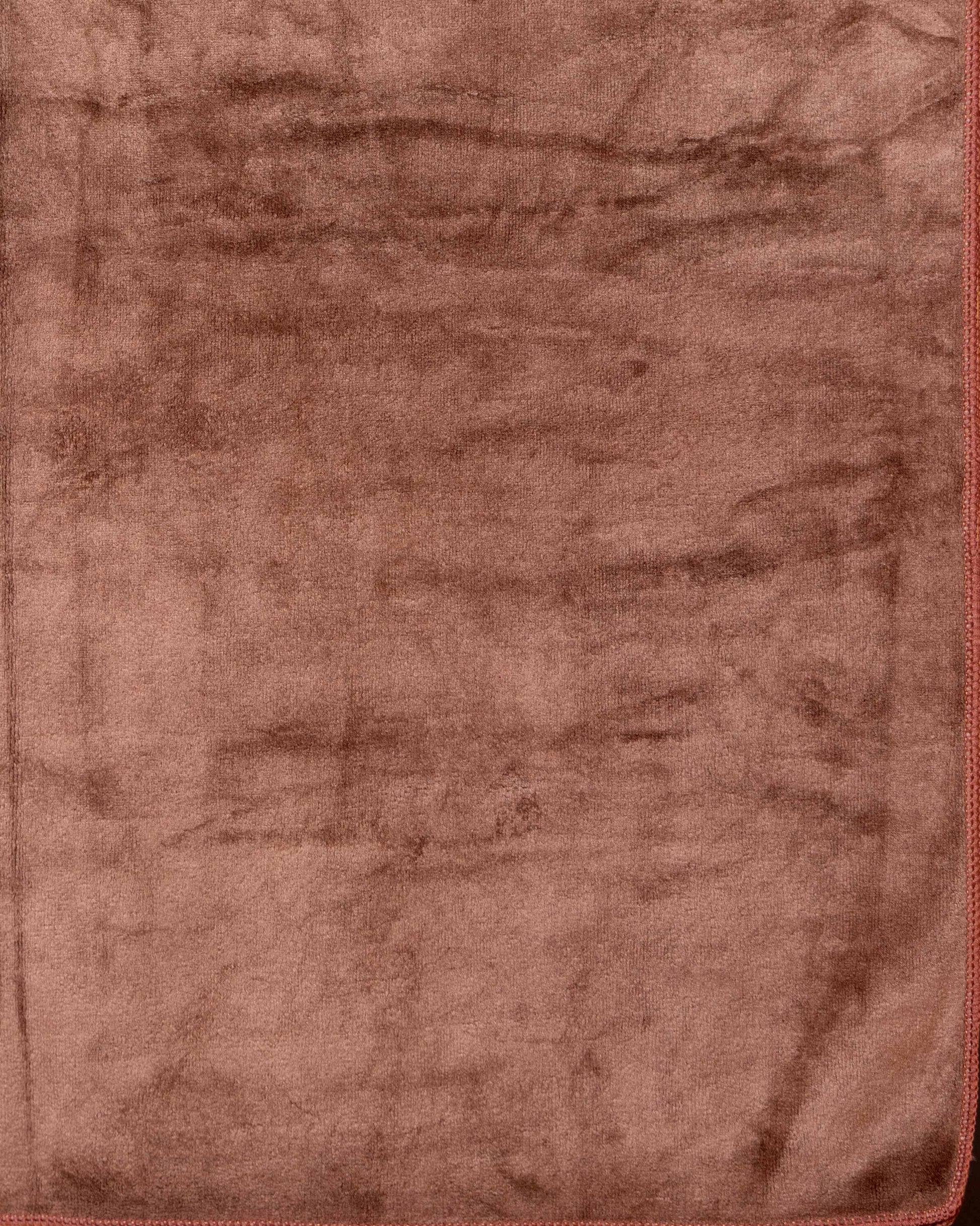 Elegant Handwoven Woolen Towel with Minimal Cut Pile Border - Dark Brown