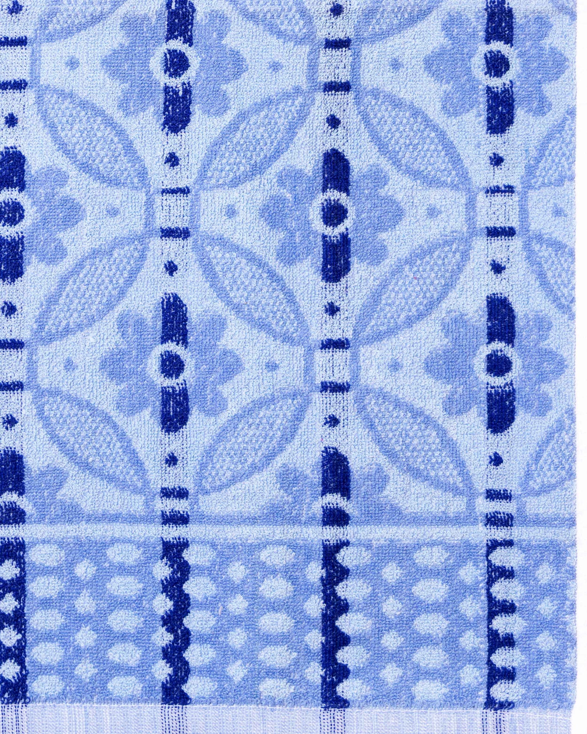 - This soft, blue and white towel a charming floral and leaf pattern accented with vertical stripes for a classic, elegant look