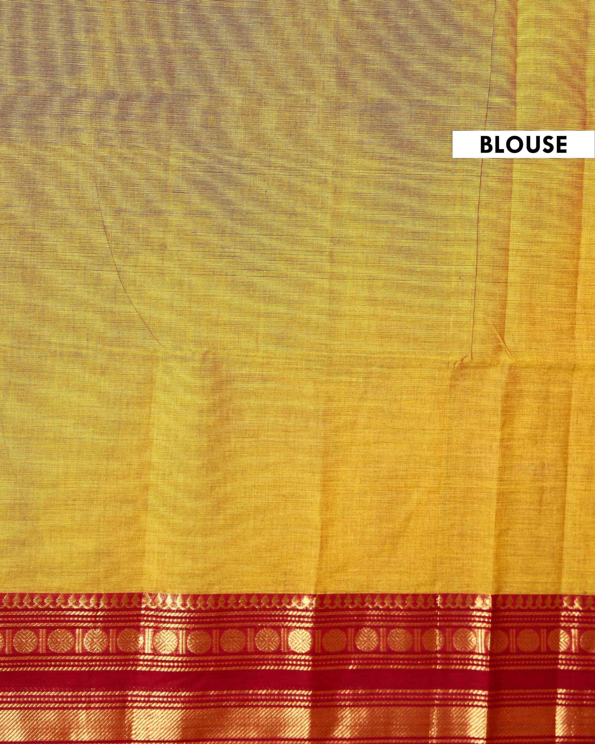 Elegant Kanchi Cotton Saree Traditional Zari Woven Borders and Fine Handloom Texture - Olive Green