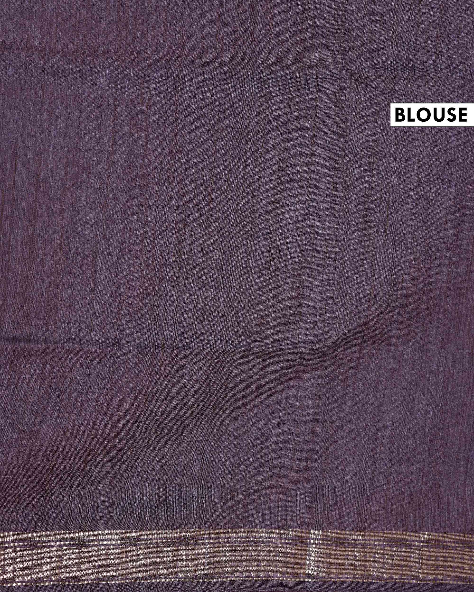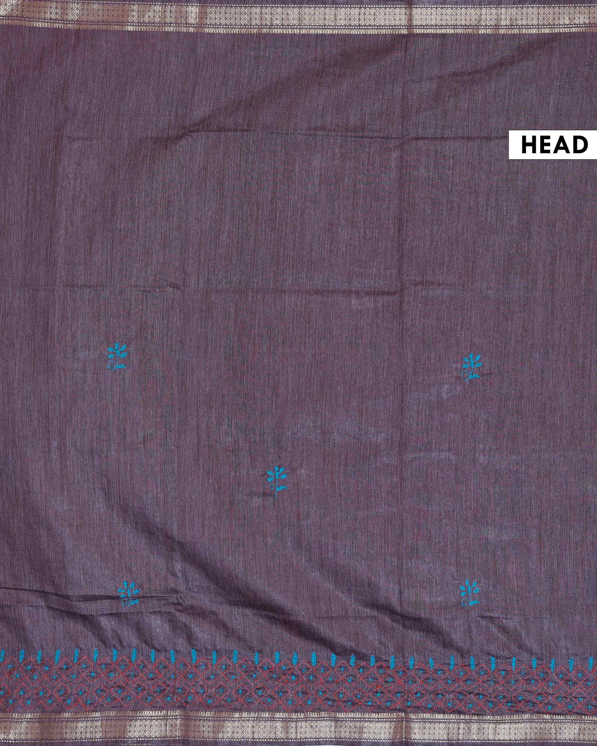 Elegant Kantha Hand Embroidered Saree with Intricate Floral Motif and Contrast Border - Brownish Purple