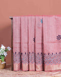 Elegant Kantha Hand Embroidered Saree with Intricate Floral Motif and Contrast Border - Dusty Pink