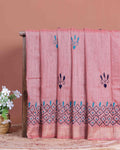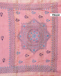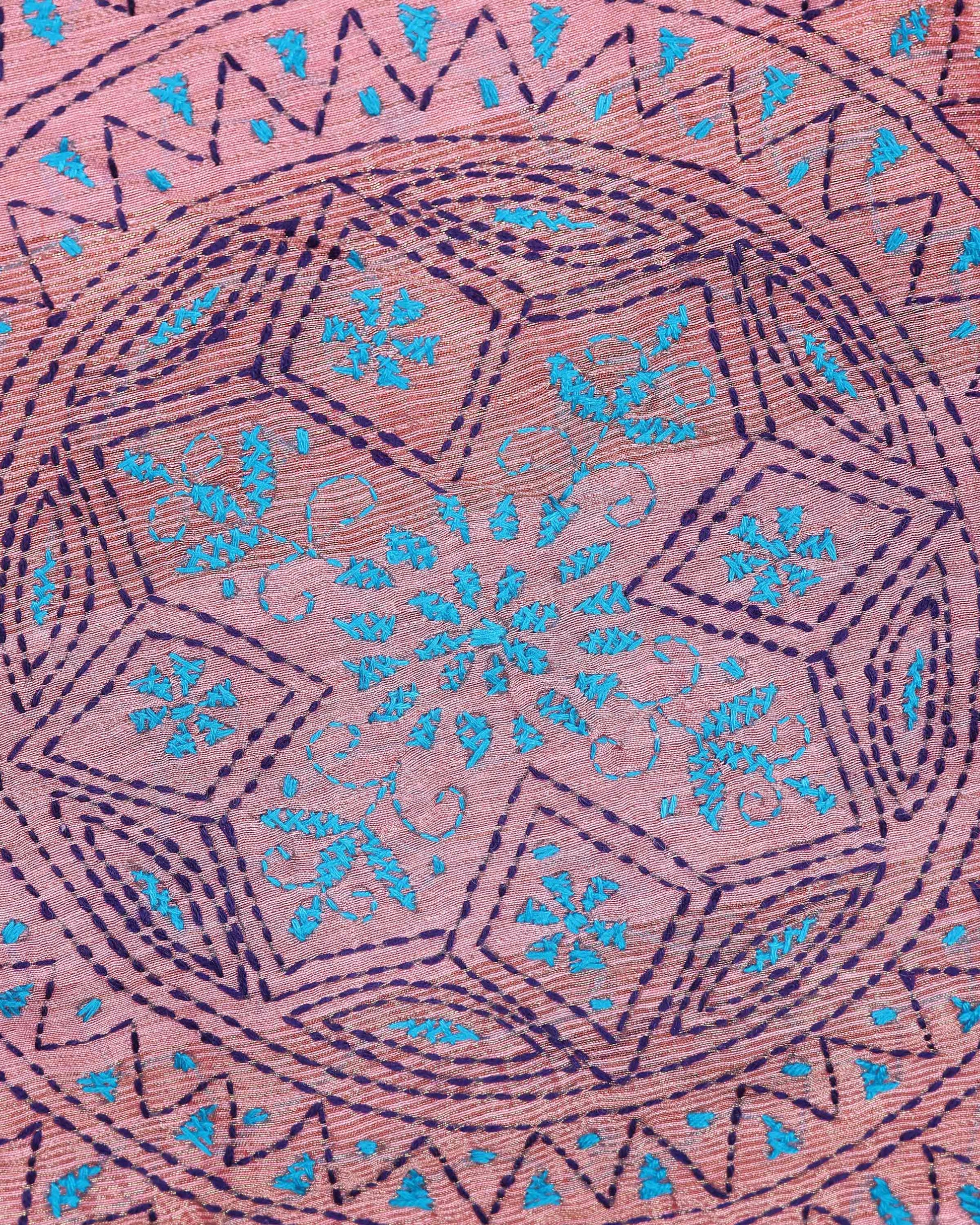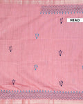- This beautiful dusty Pink Kantha saree features intricate traditional embroidery along the border and pallu