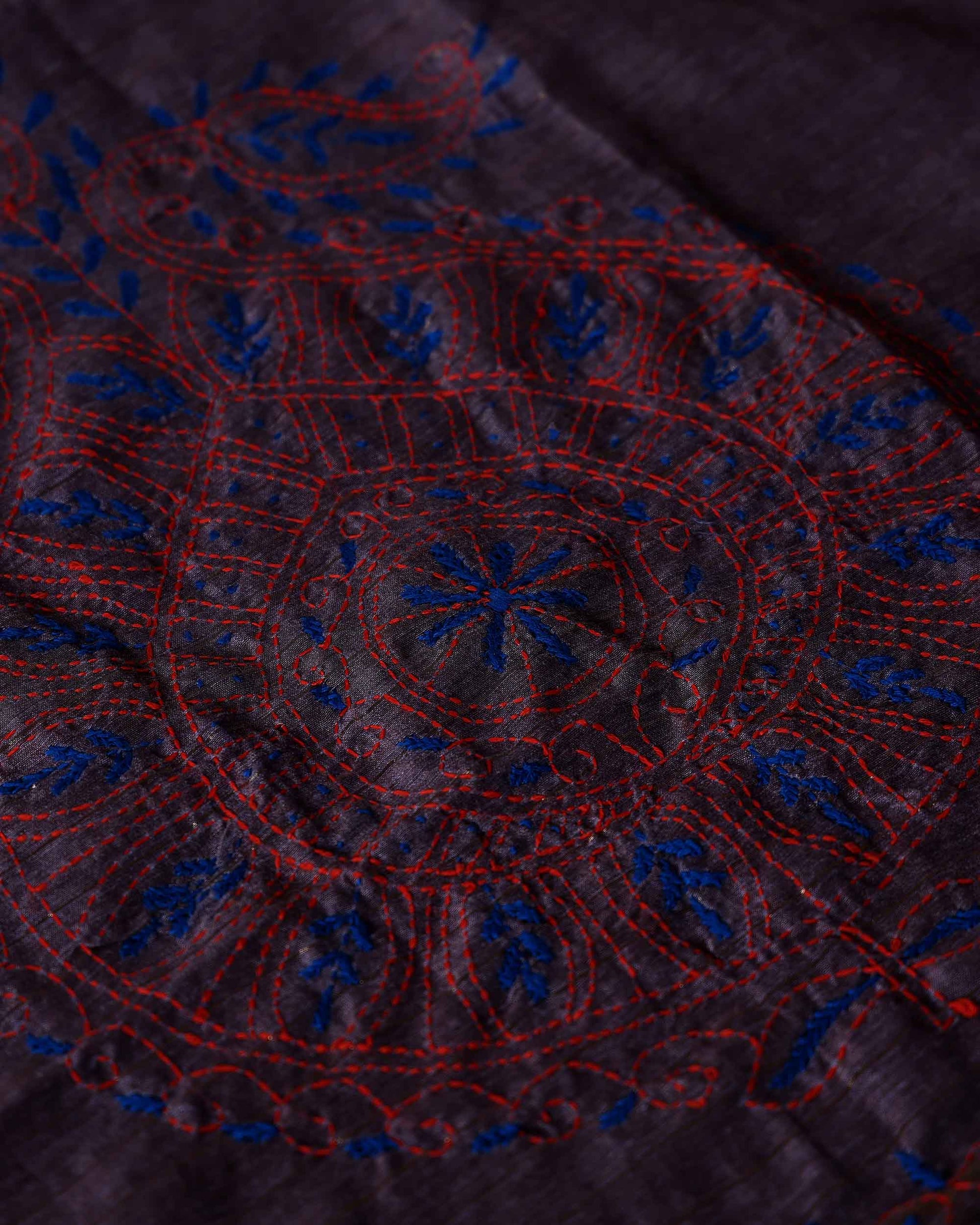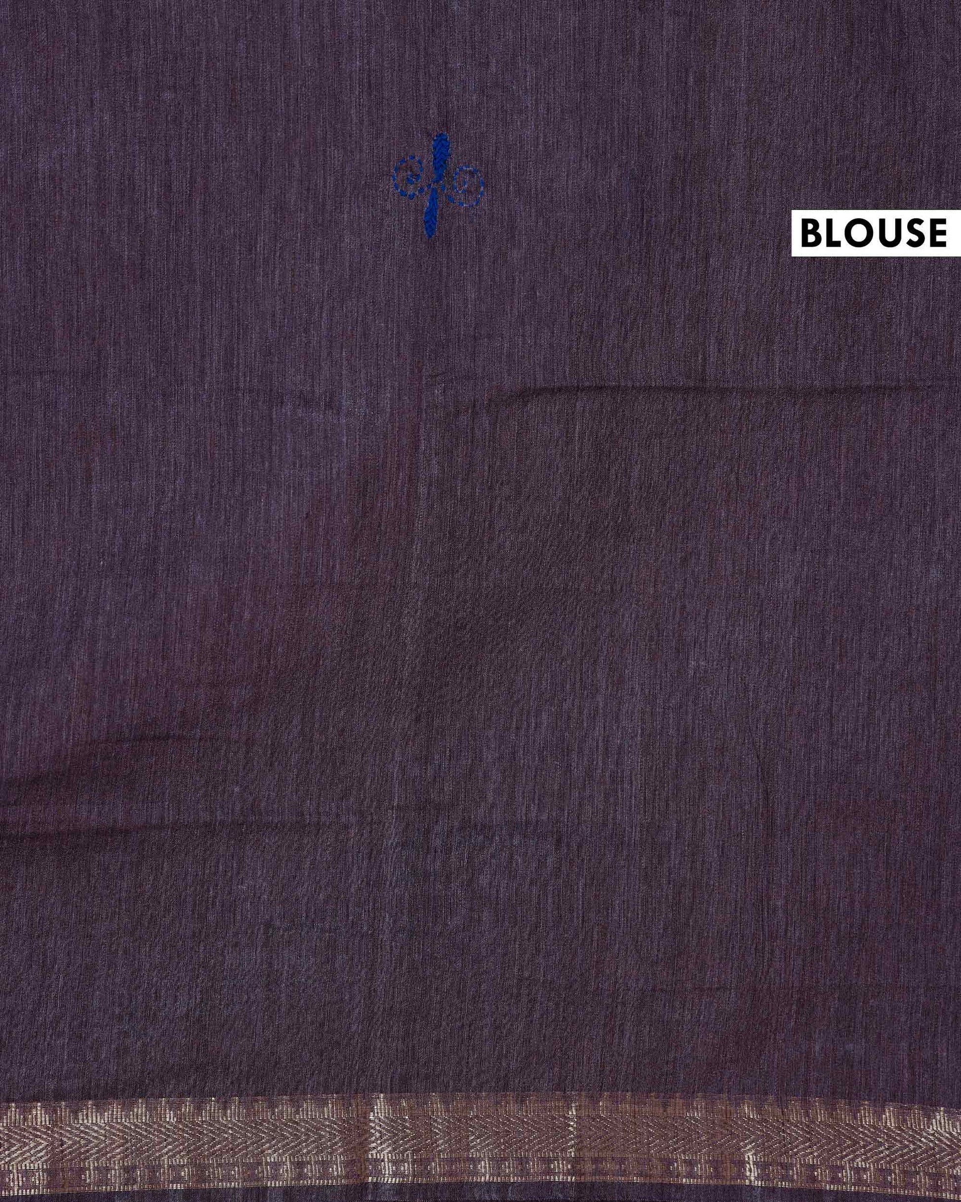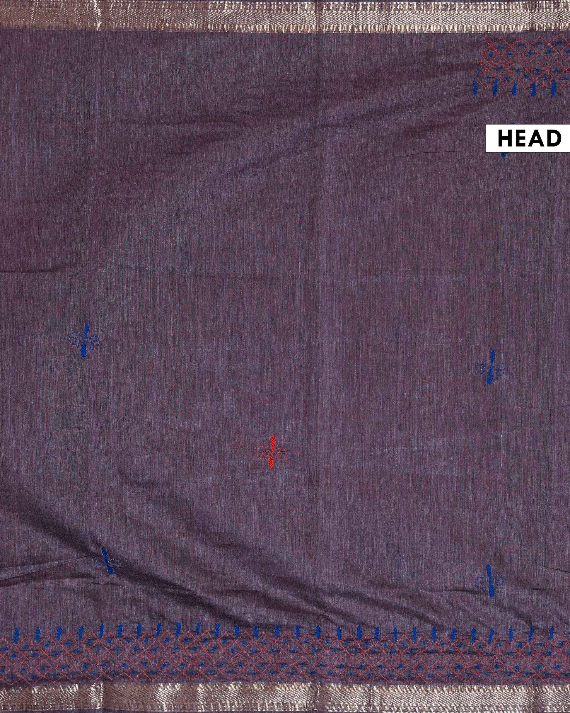 - This beautiful Dusty Purple Kantha saree features intricate traditional embroidery along the border and pallu