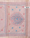 - This beautiful Light Brown Kantha saree features intricate traditional embroidery along the border and pallu