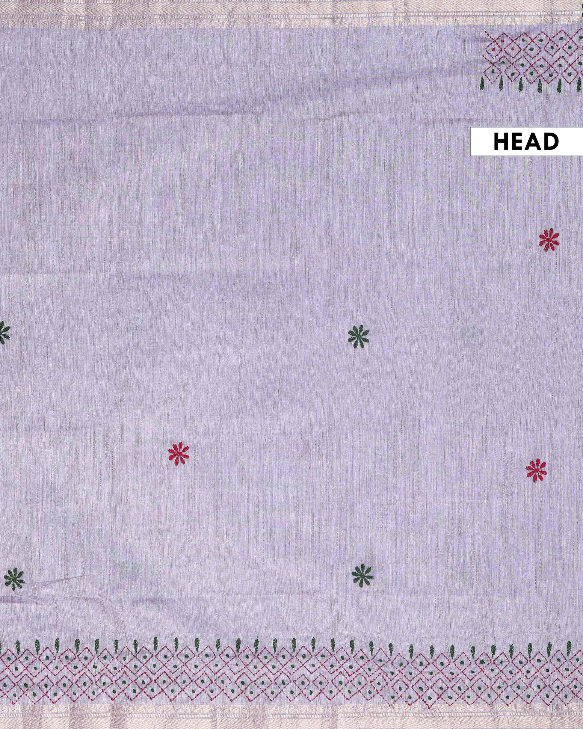 - This beautiful Light Grey Kantha saree features intricate traditional embroidery along the border and pallu