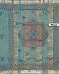Elegant Kantha Hand Embroidered Saree with Intricate Geometric Motif and Contrast Border - Green