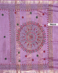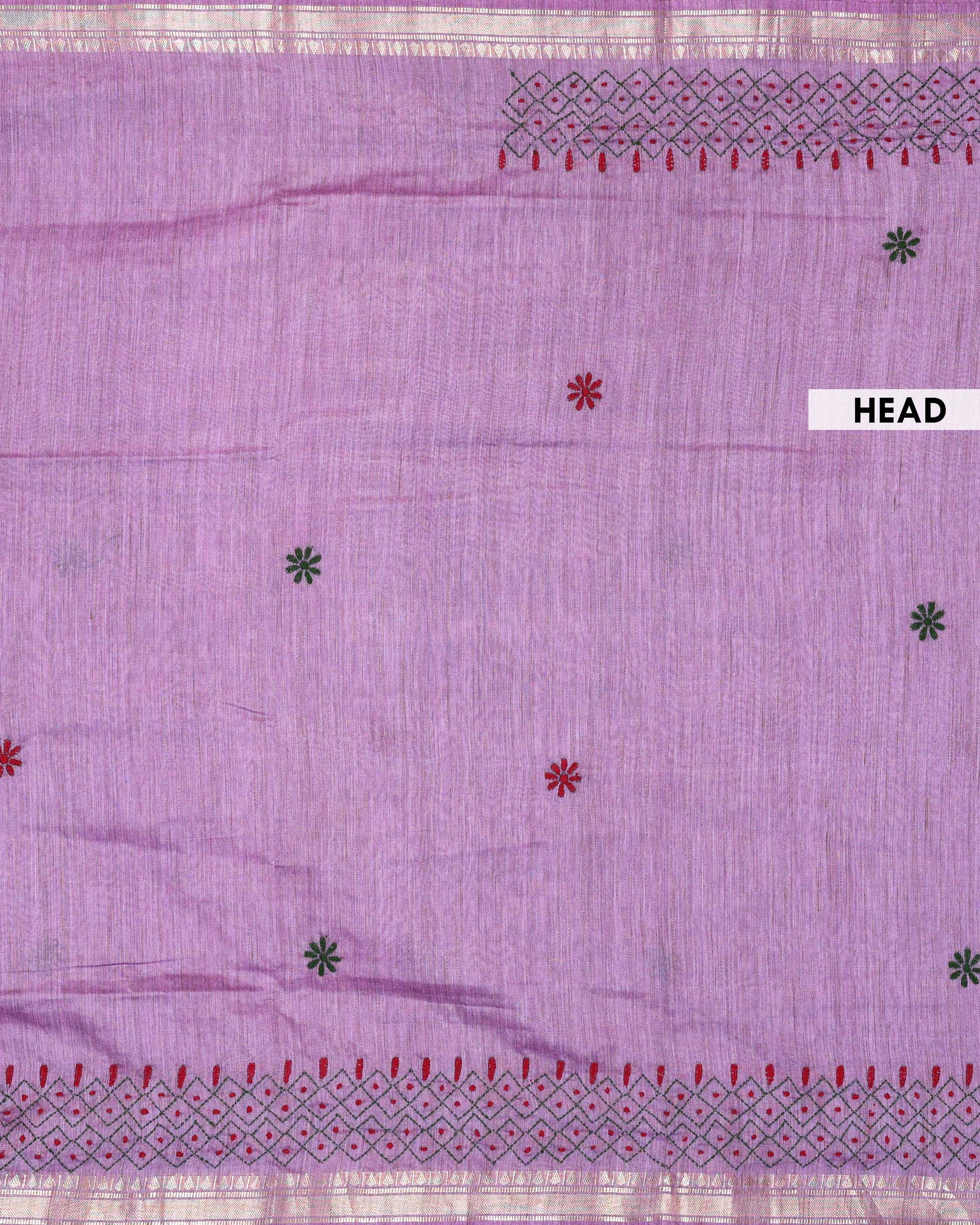 - This beautiful Purple Kantha saree features intricate traditional embroidery along the border and pallu