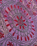 Elegant Kantha Hand Embroidered Saree with Intricate Geometric Motif and Contrast Border - Purple