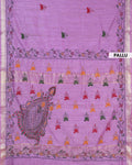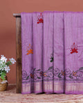 Elegant Kantha Hand Embroidered Saree with Traditional Floral Motifs and Woven Contrast Border - Lavender