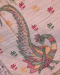 Elegant Kantha Hand Embroidered Saree with Traditional Floral Motifs and Woven Contrast Border - Light Brown