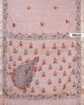 Elegant Kantha Hand Embroidered Saree with Traditional Floral Motifs and Woven Contrast Border - Light Brown