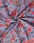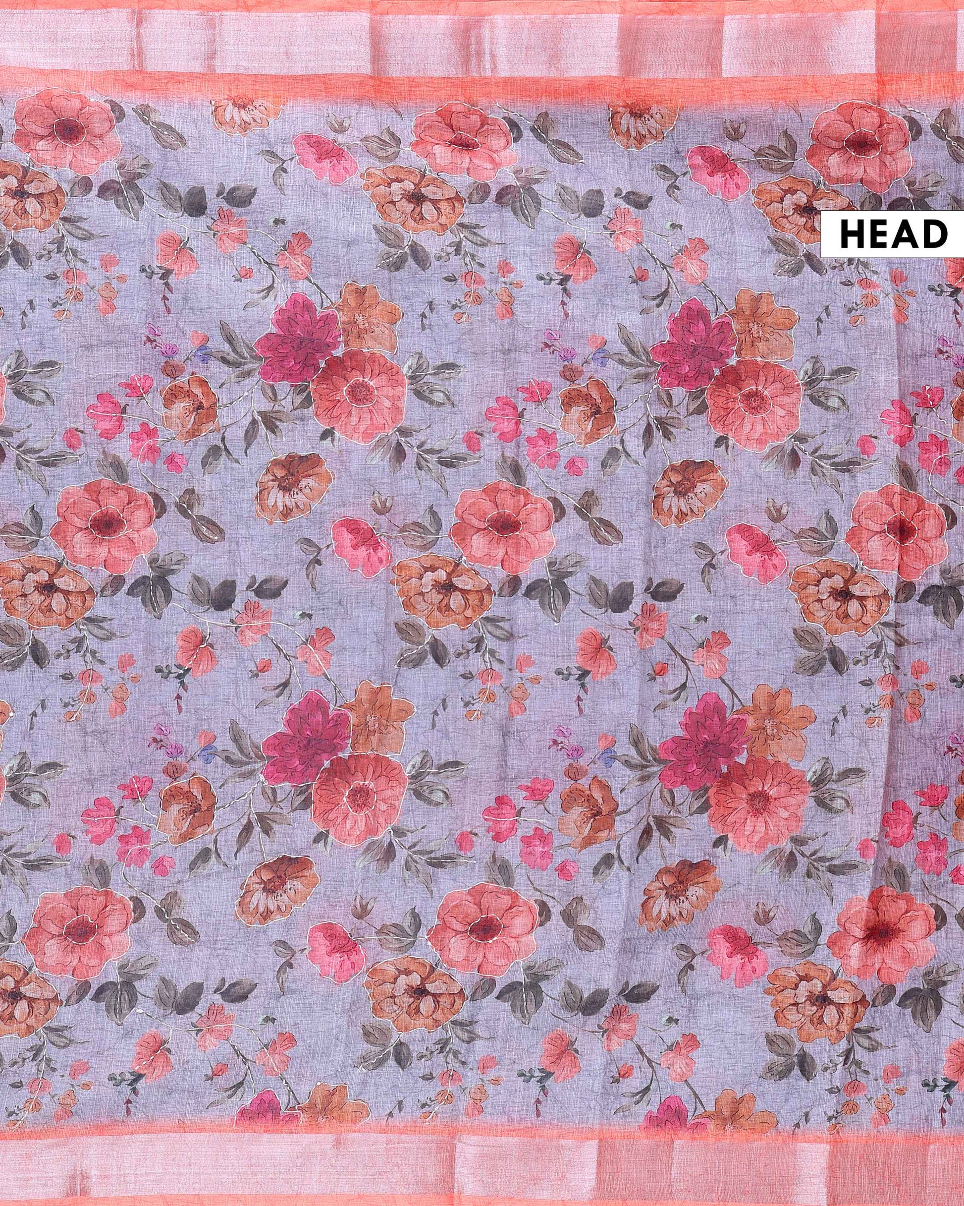 Elegant Kantha Work Saree with Semi Linen Floral Print and Contrasting Border - Grey
