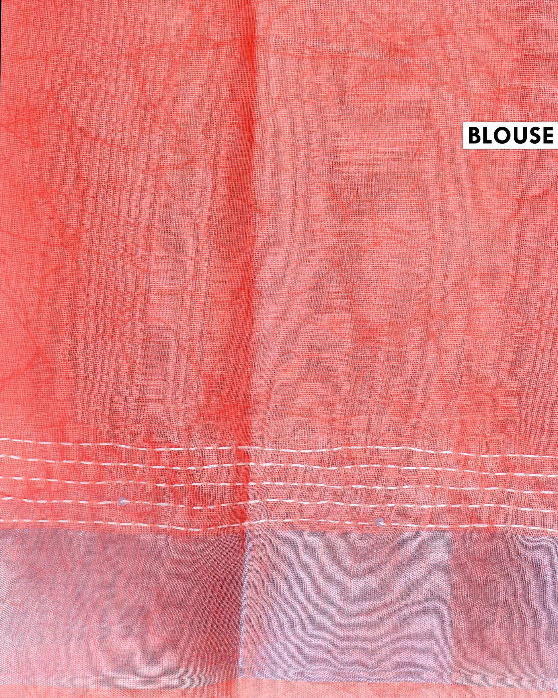 - This elegant grey Kantha work saree beautiful hand-embroidered floral motifs in vibrant pink and orange