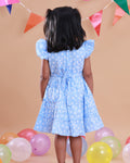 Elegant Kids' Party Wear Frock with Floral Print - Blue