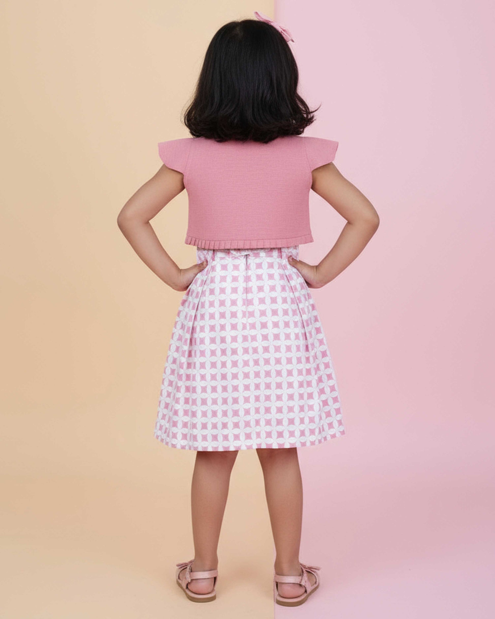Elegant Kids' Party Wear Frock with Shrug and Bow Detail - Pink