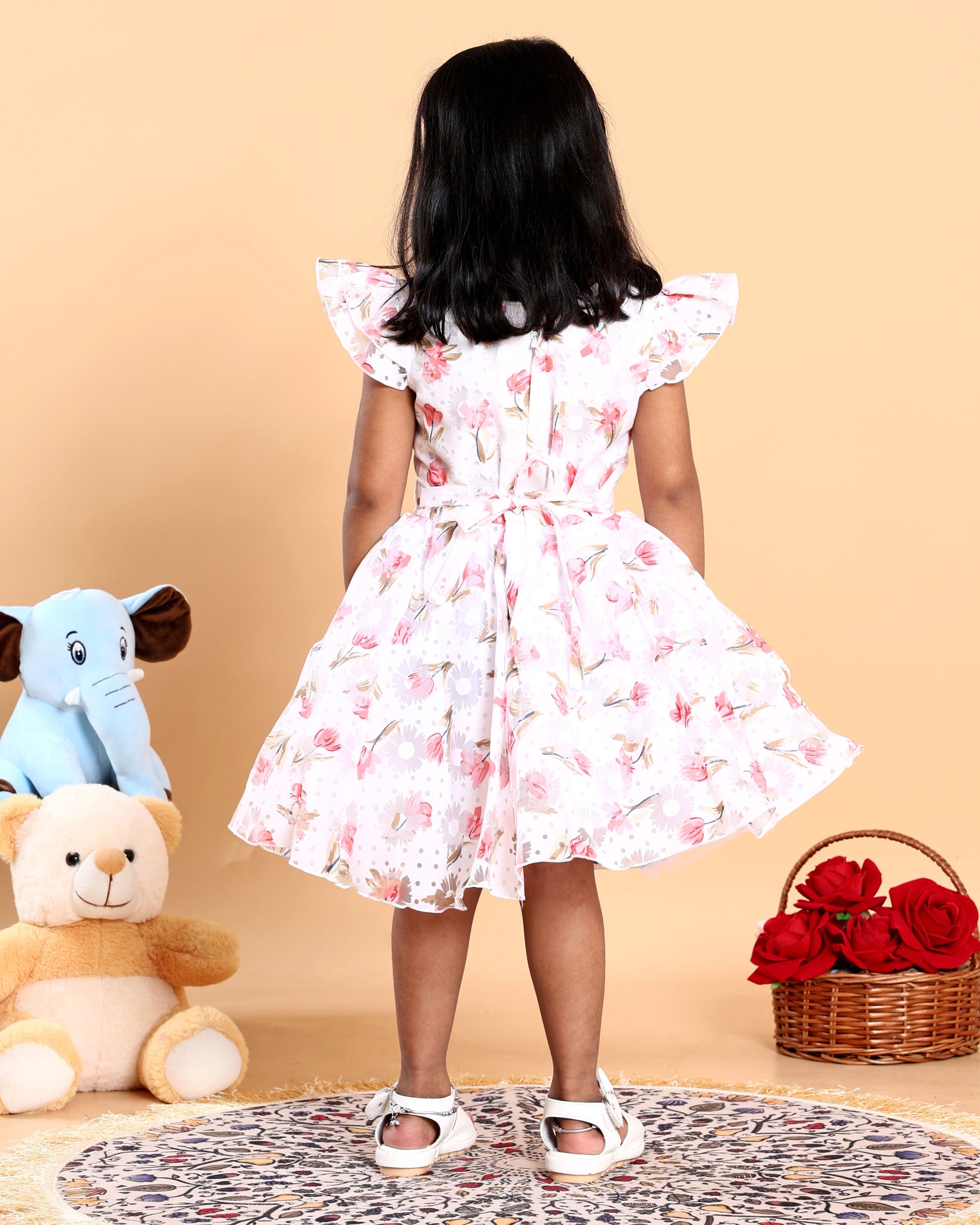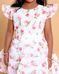 Elegant Floral Printed Party Wear Kids Frock with Flared Hemline and Bow Detail - White