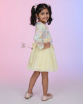 Elegant Kids' Pleated Frock with Floral Sequin Jacket - Yellow