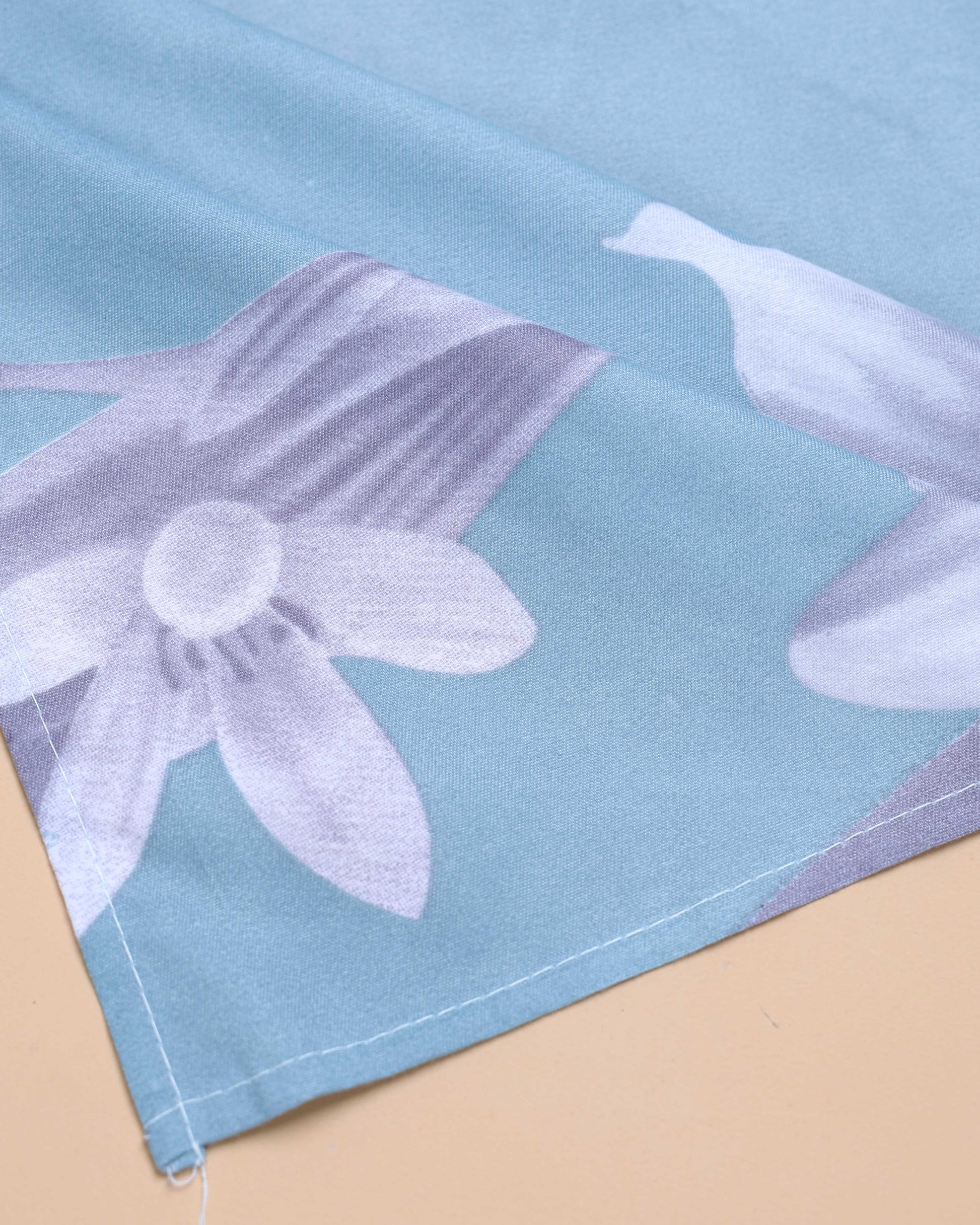 Elegant Floral Print Design Bed Cover with Matching Pillow Cover Set - Blue