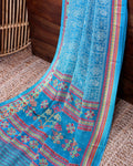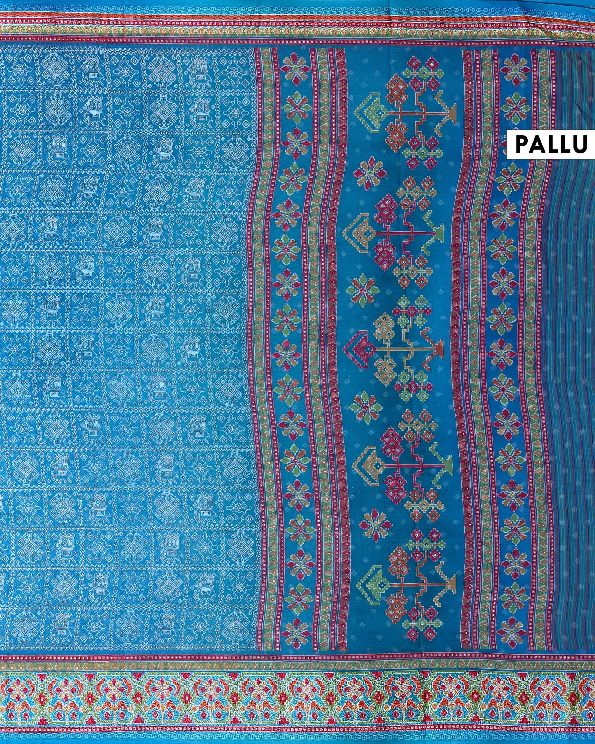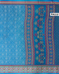 - Elevate your ethnic wardrobe with this stunning blue georgette saree featuring vibrant traditional motifs and a striking border.
