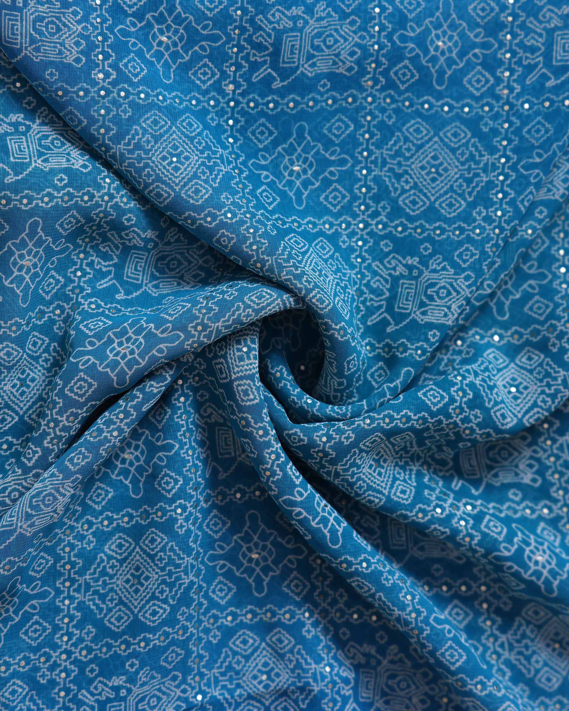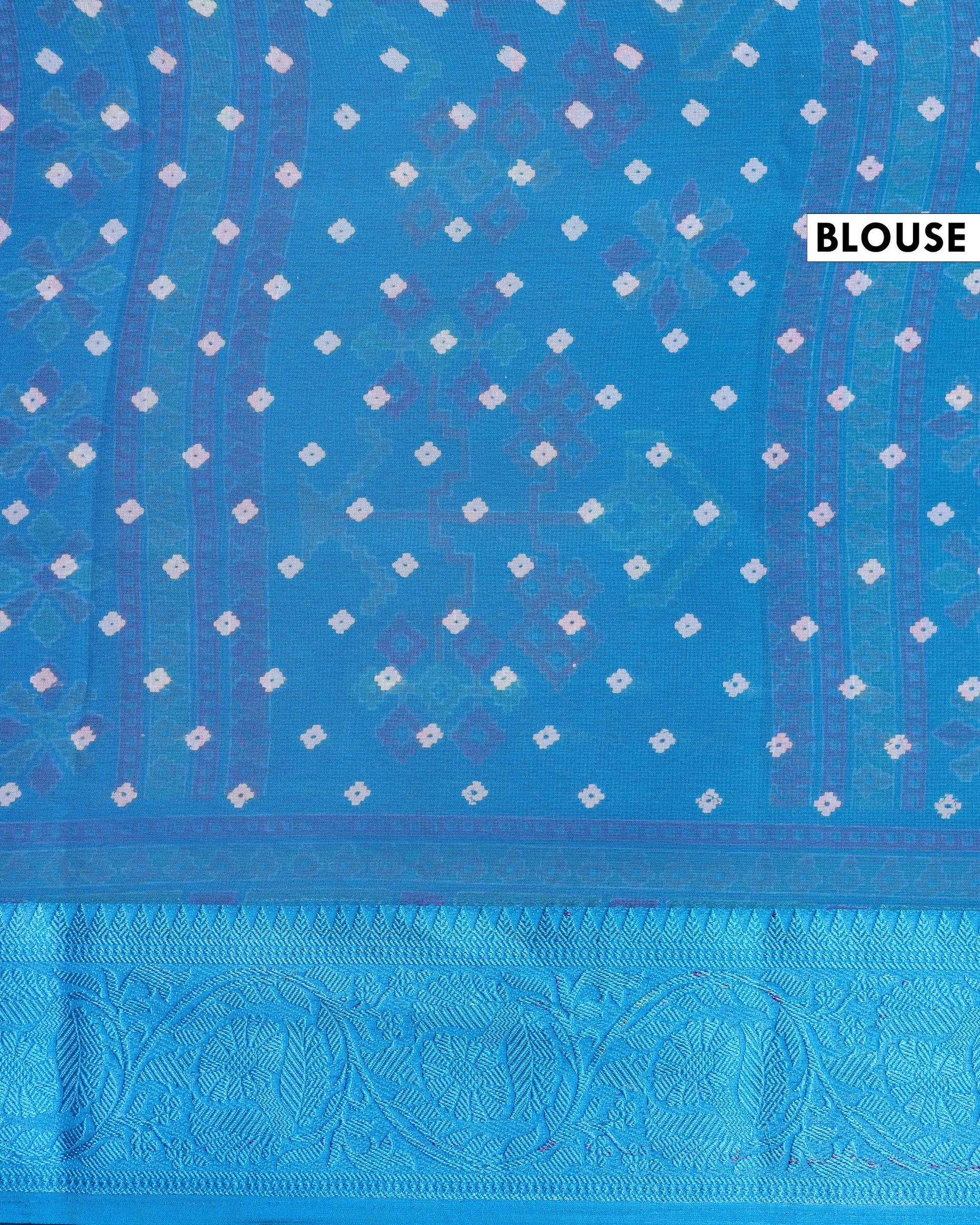 Elegant Lightweight Georgette Saree with Intricate Tribal Inspired Bandhani Motifs and Decorative Woven Border - Blue
