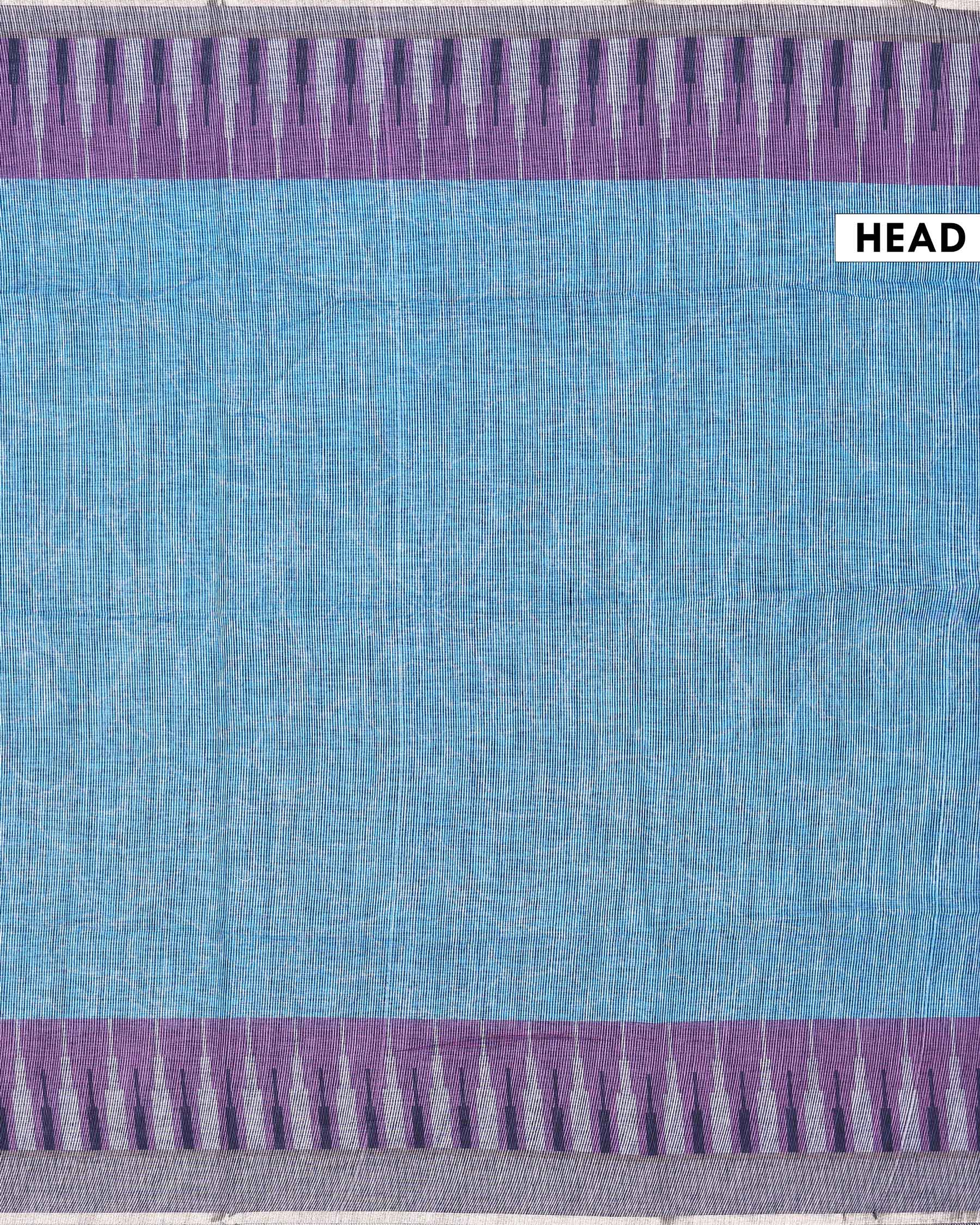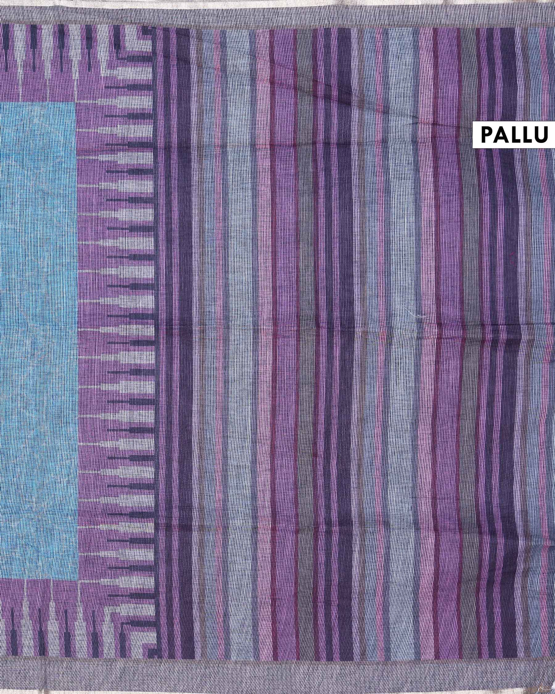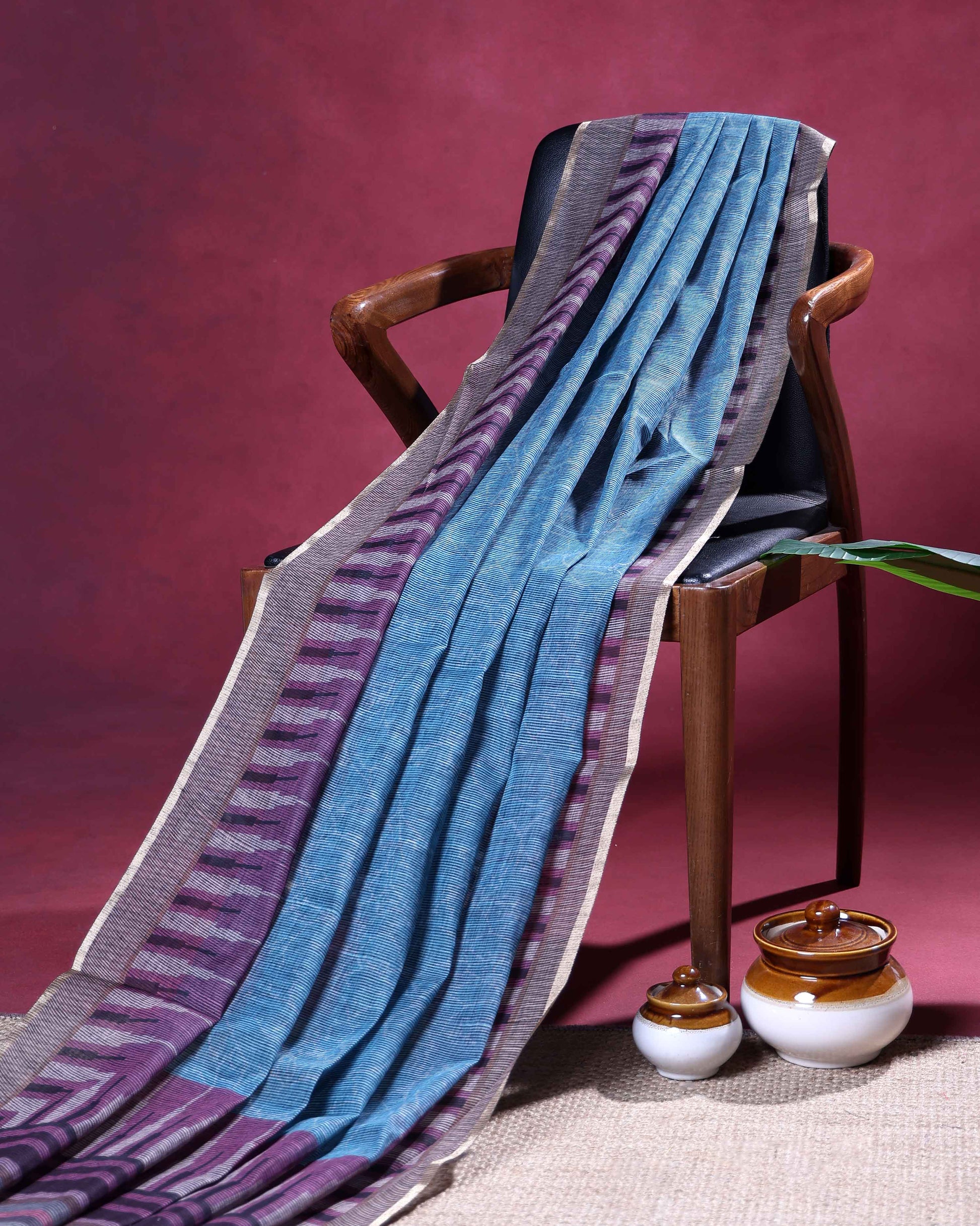 Elegant Linen Blend Saree with Minimalist Body and Intricate Ikkat Pattern Border Design - Pastel Blue