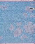 Elegant Linen Blend Saree with Subtle Floral Buta Motifs and Traditional Contrast Woven Border - Pastel Blue
