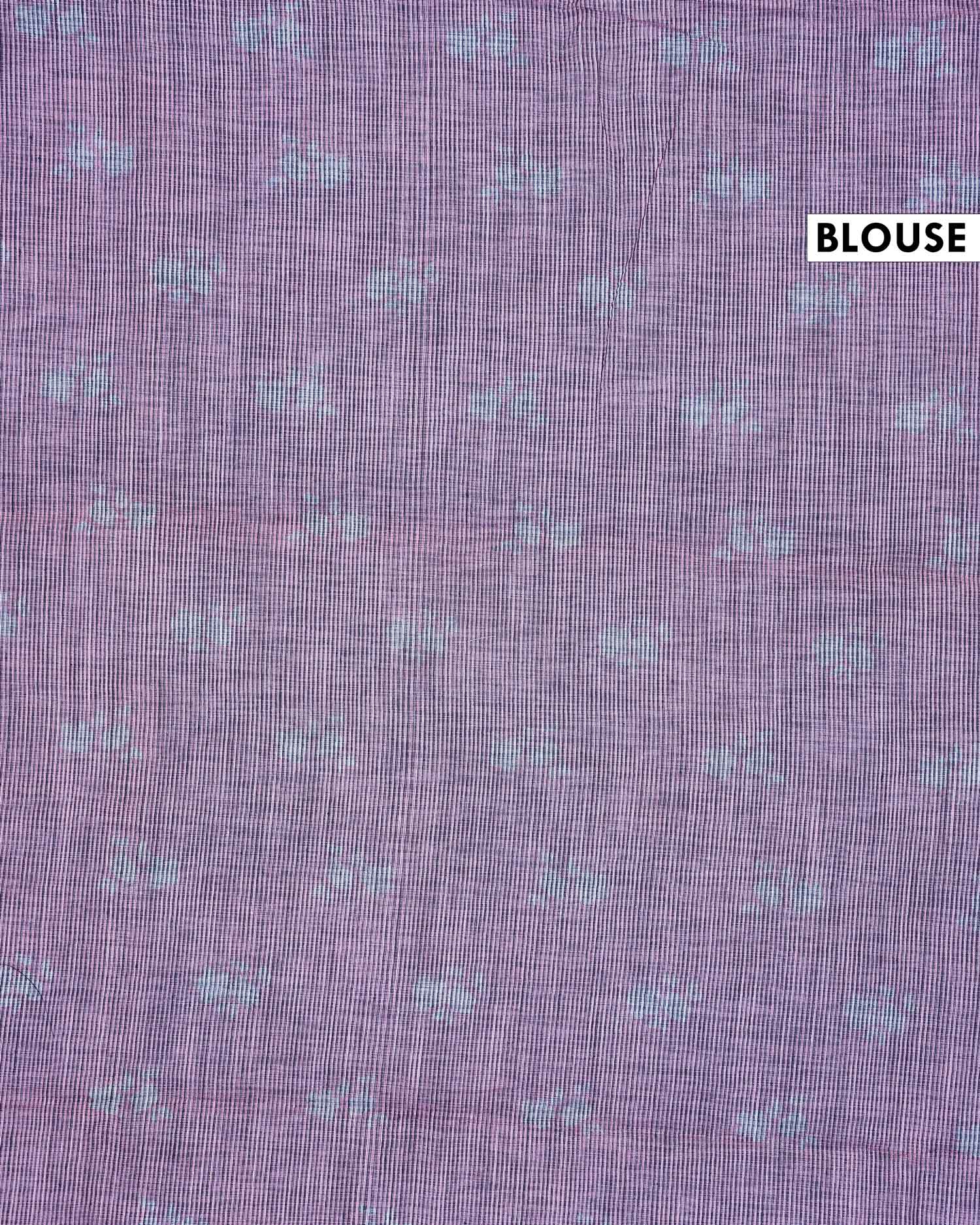 Elegant linen blend saree adorned with subtle floral buta motifs and a refined woven border, offering timeless ethnic charm and graceful sophistication.