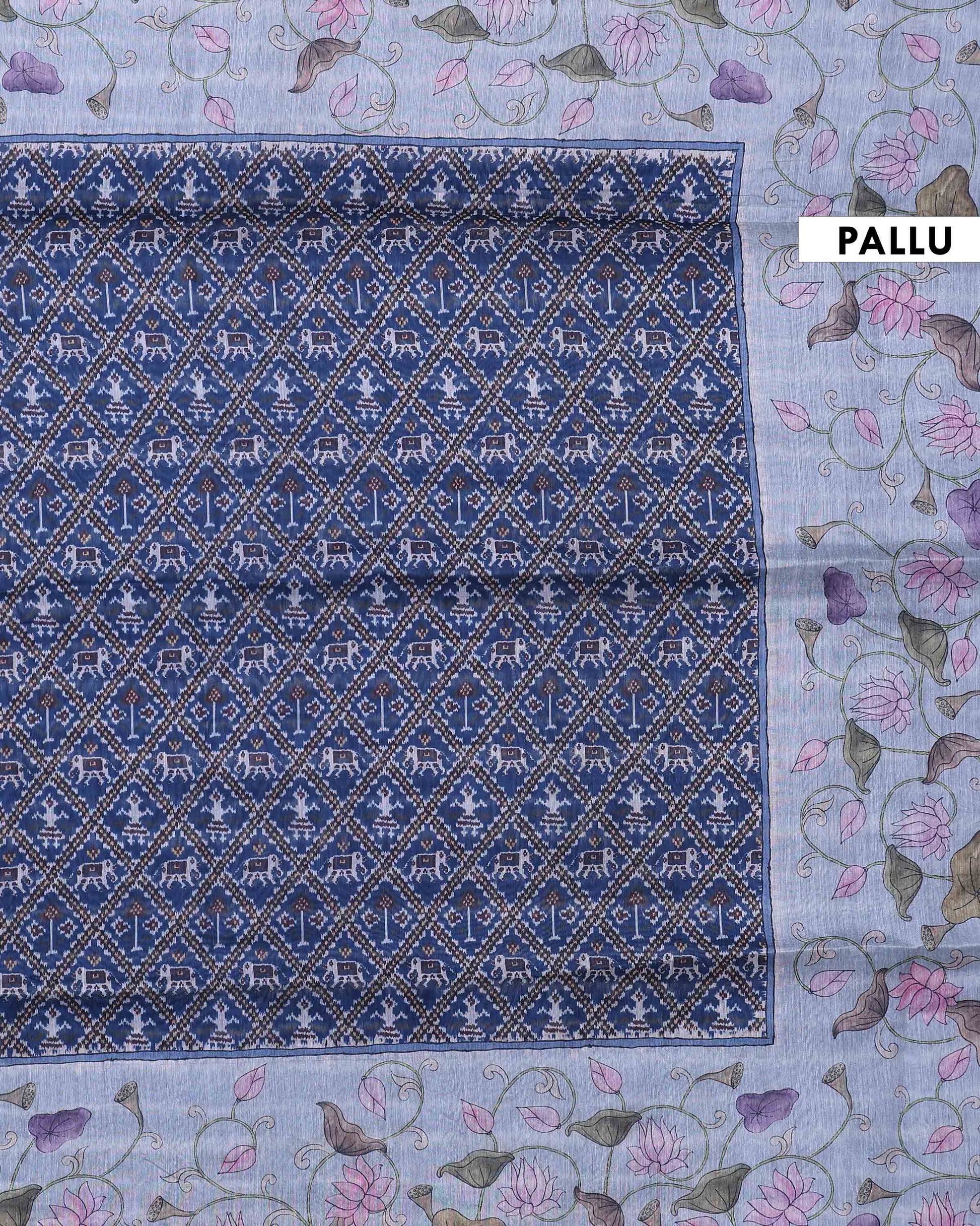 Elegant Linen Organza Saree with All Over Patola Print and Traditional Floral Pallu - Blue