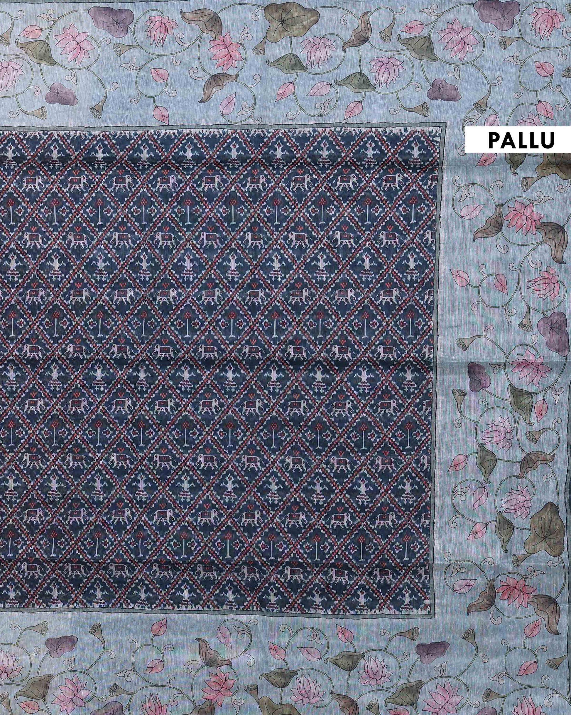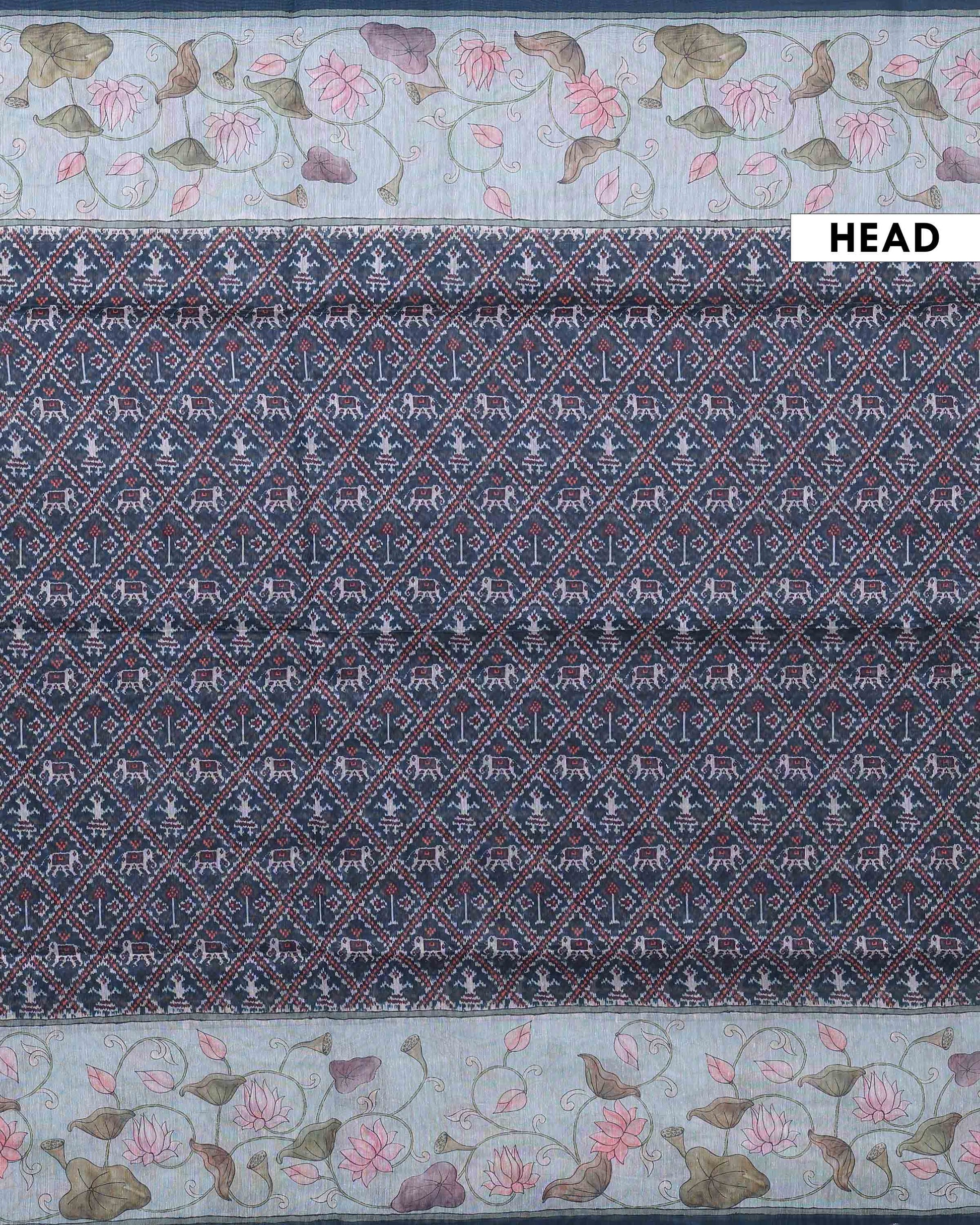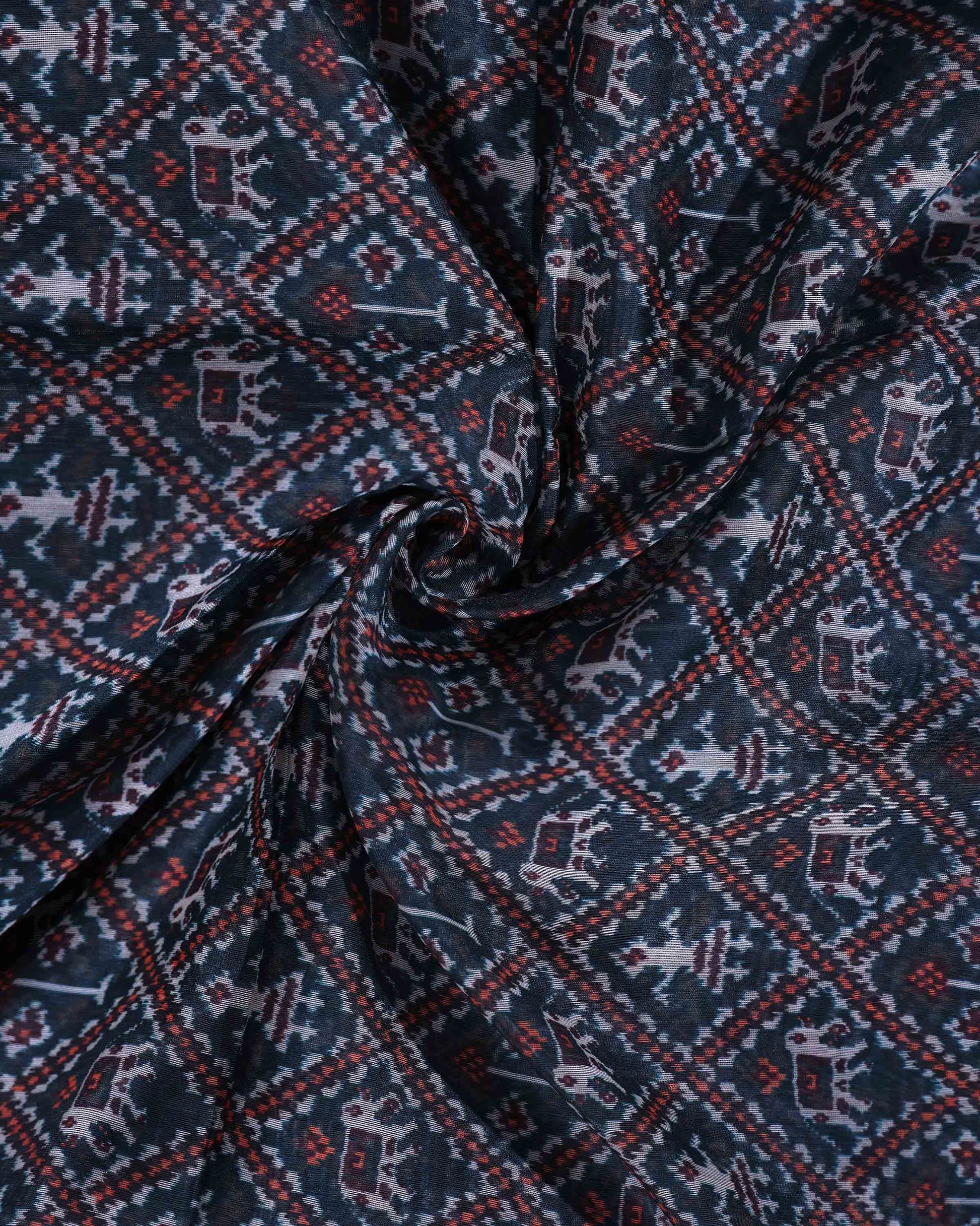 Elegant Linen Organza Saree with All Over Patola Print and Traditional Floral Pallu - Navy