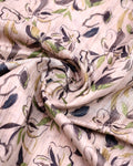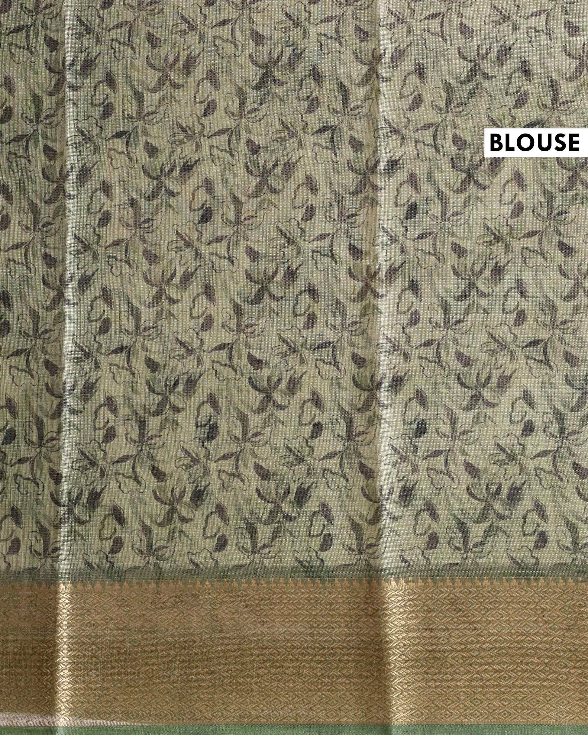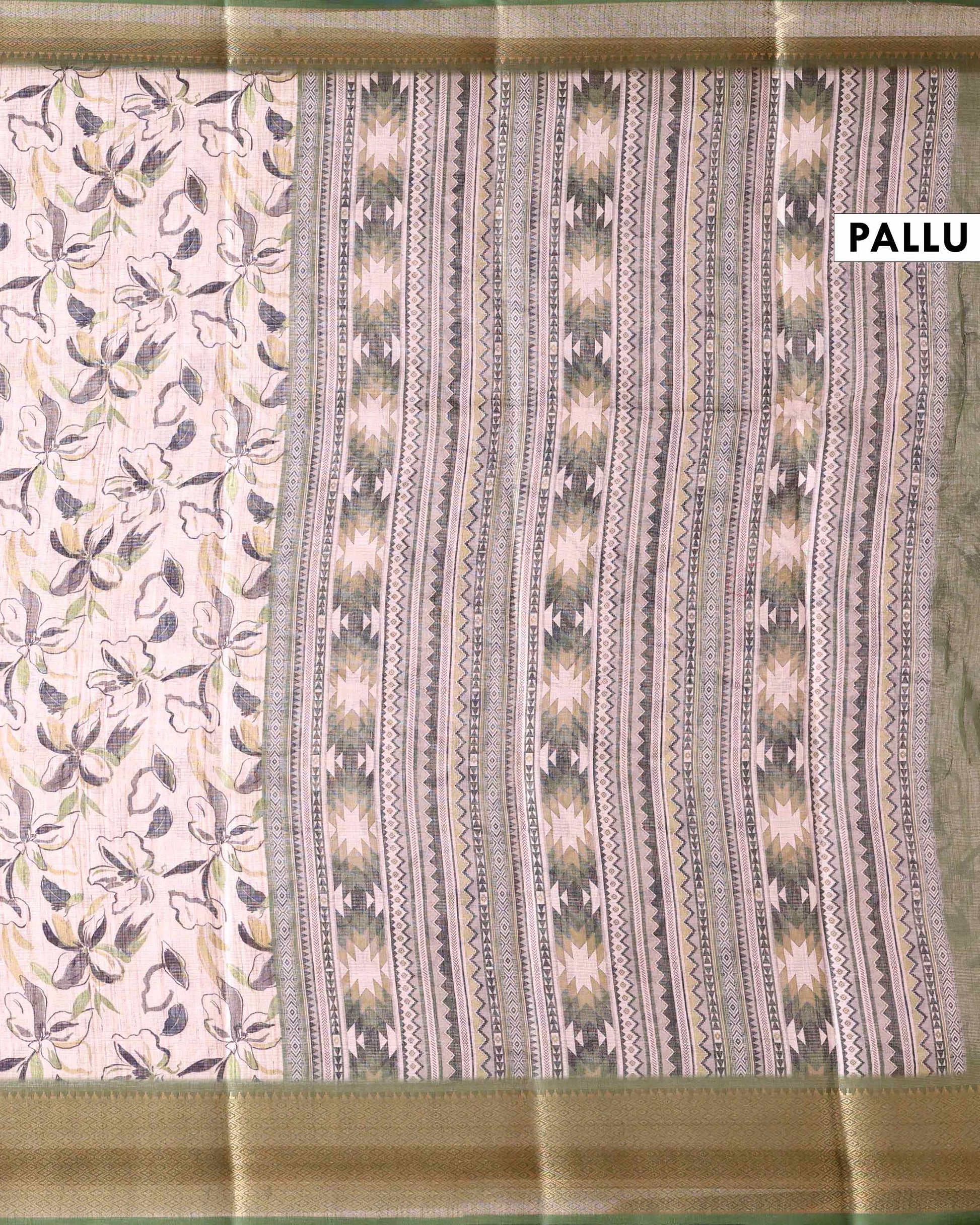Elegant Linen Tissue Saree With Floral Print and Contrast Zari Border - Beige