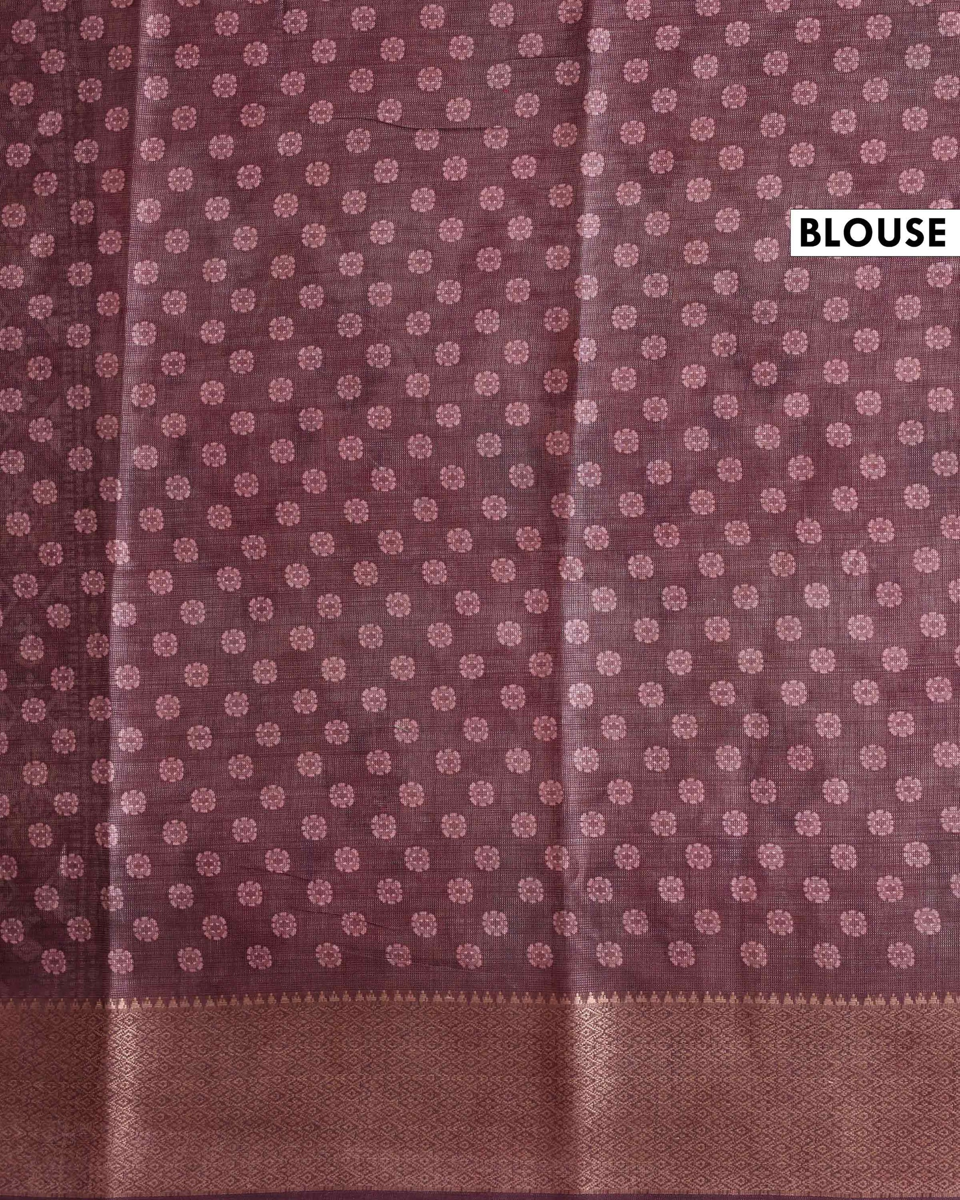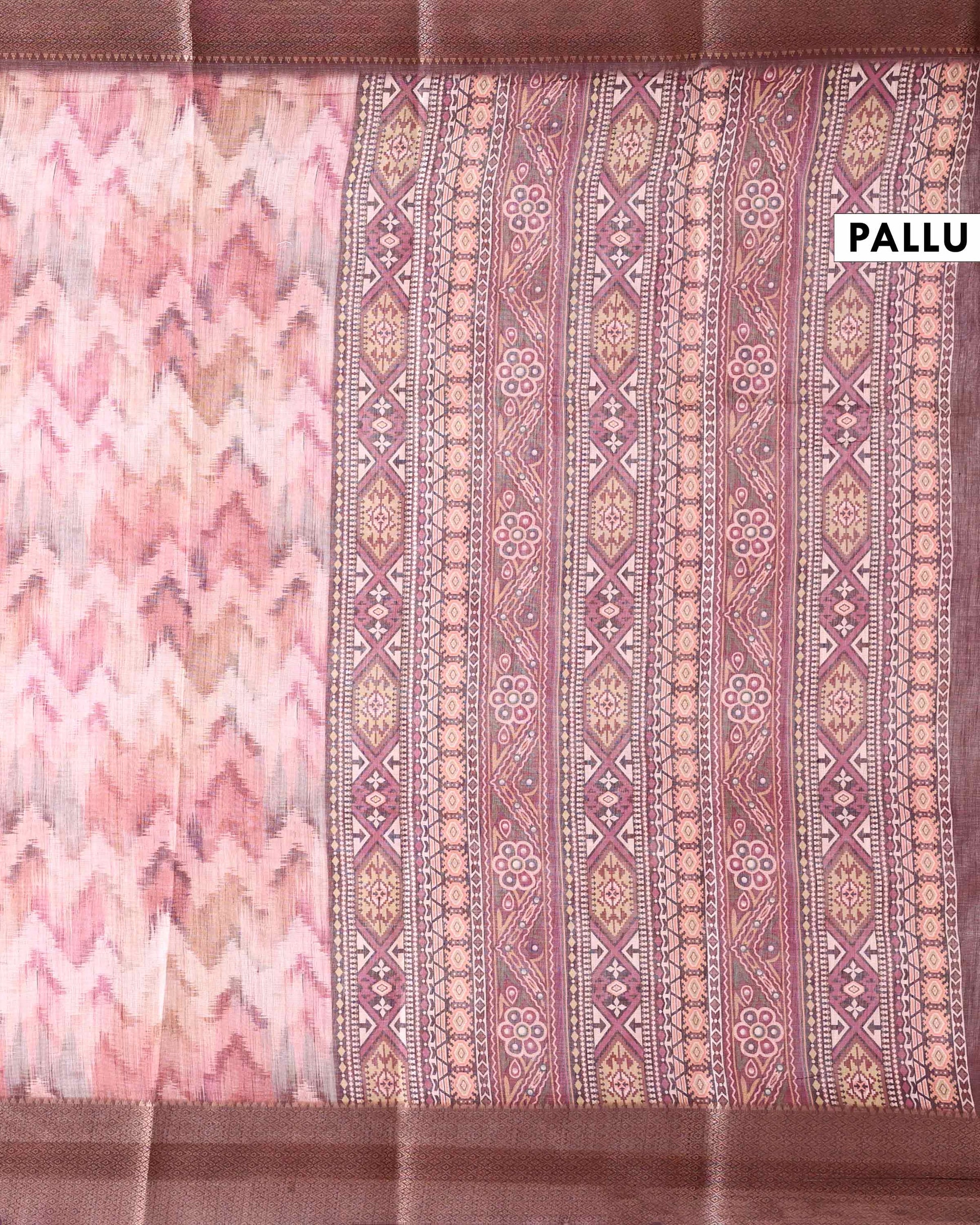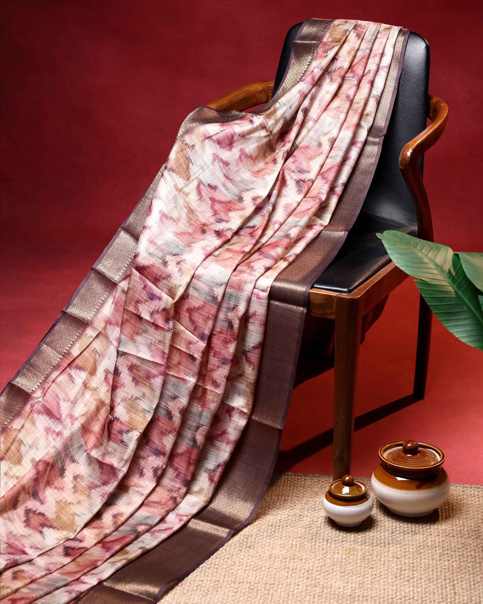 Elegant Linen Tissue Saree With Floral Print and Contrast Zari Border - Multi