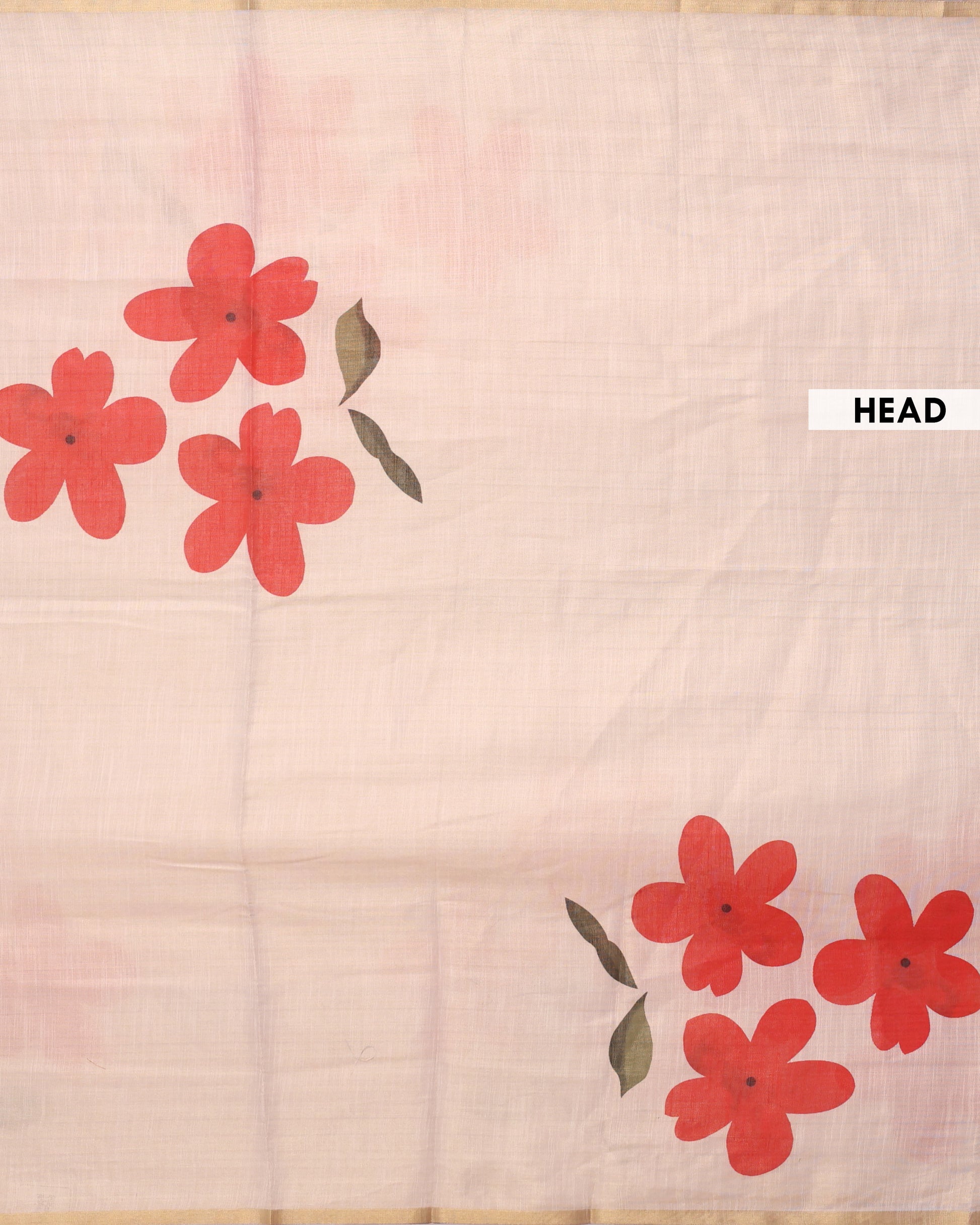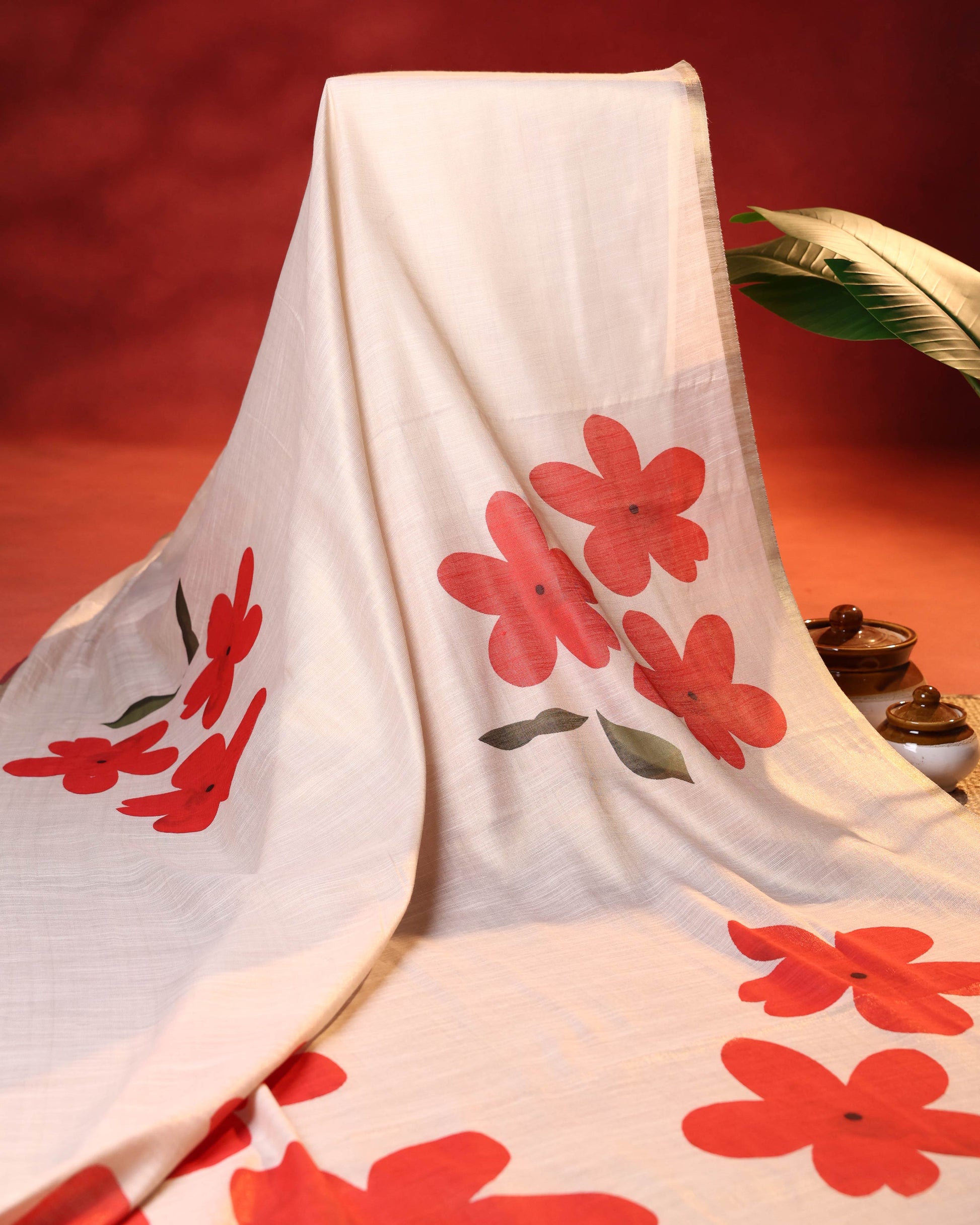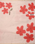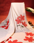 - Discover timeless elegance with this Cream linen saree featuring bold hand painted red floral motifs.