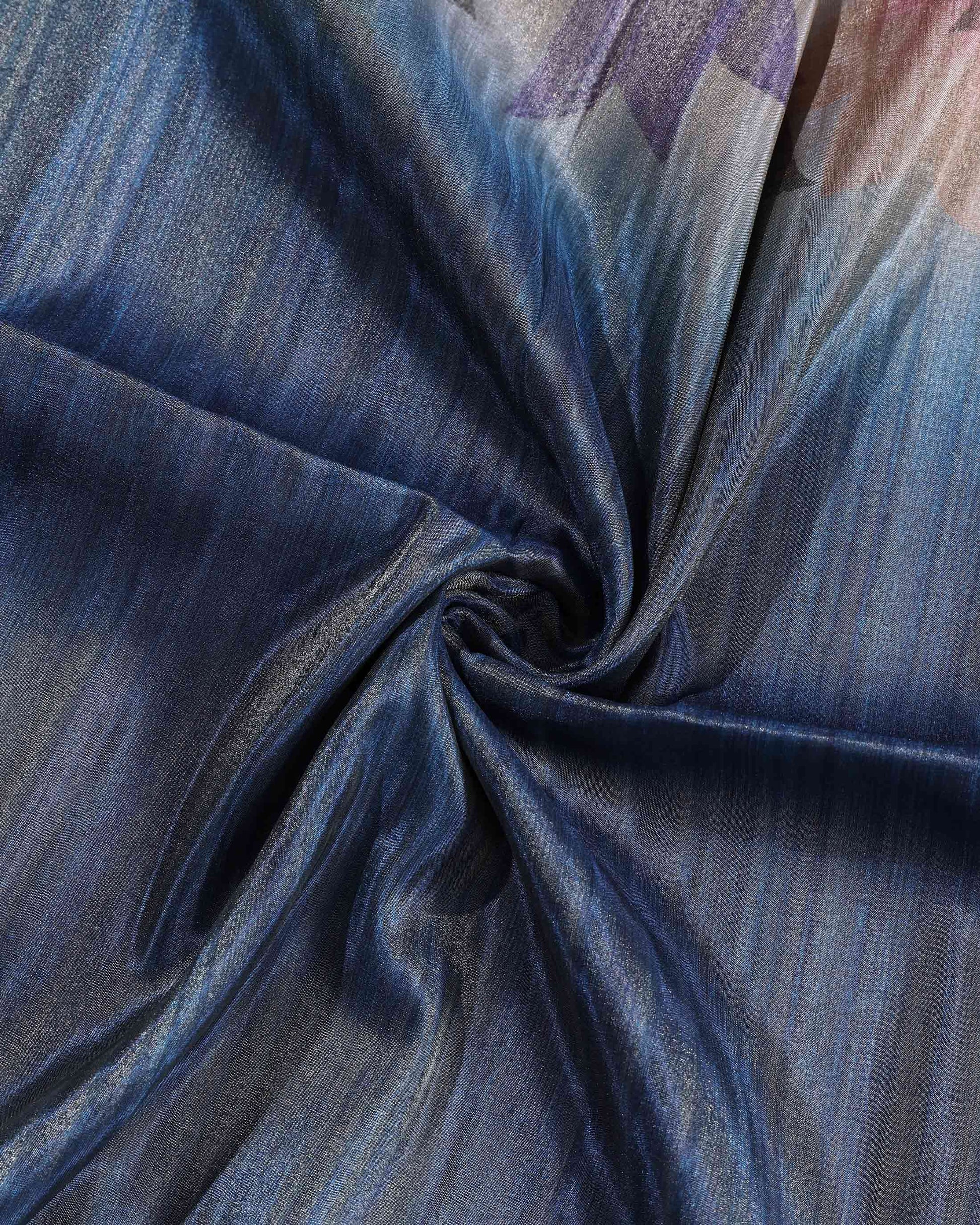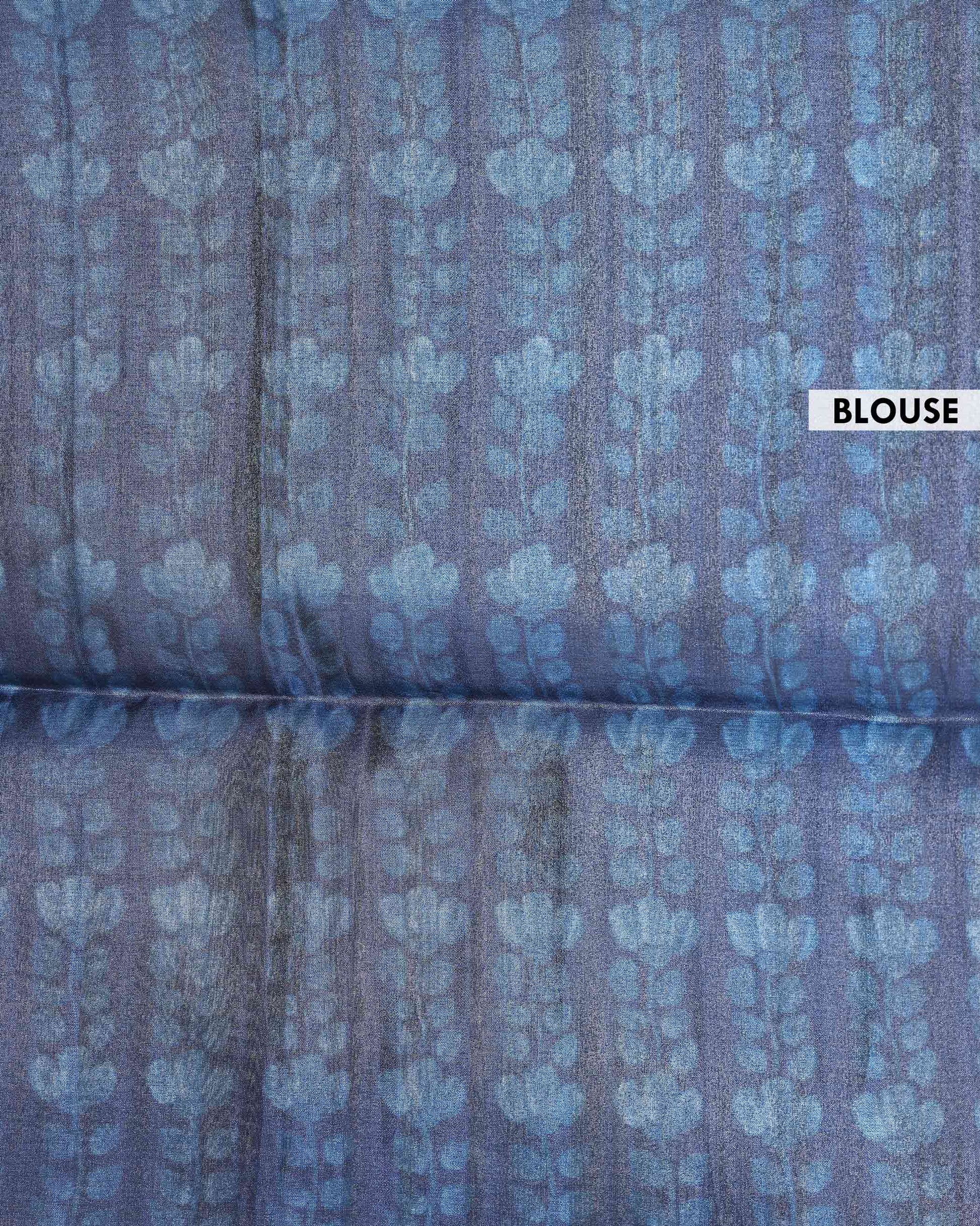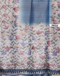 Elegant Linen Tissue Saree with Soft Floral Print Accents With A Subtle Sheen Texture and Graceful Contrast Borders - Blue