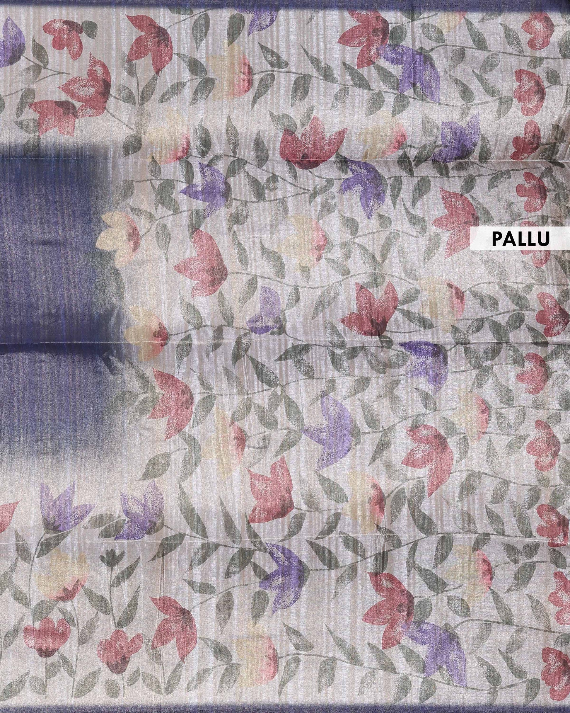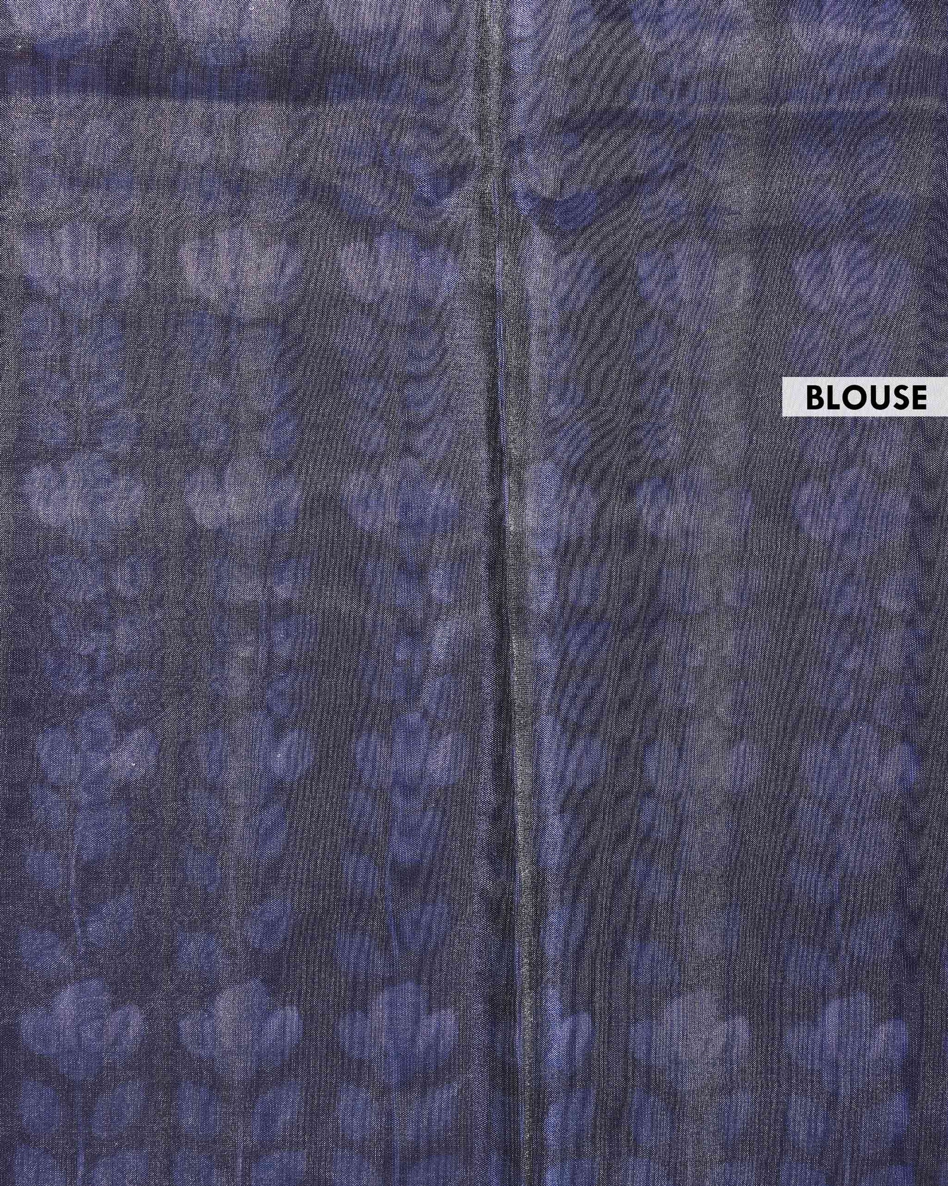 Elegant Linen Tissue Saree with Soft Floral Print Accents With A Subtle Sheen Texture and Graceful Contrast Borders - Navy
