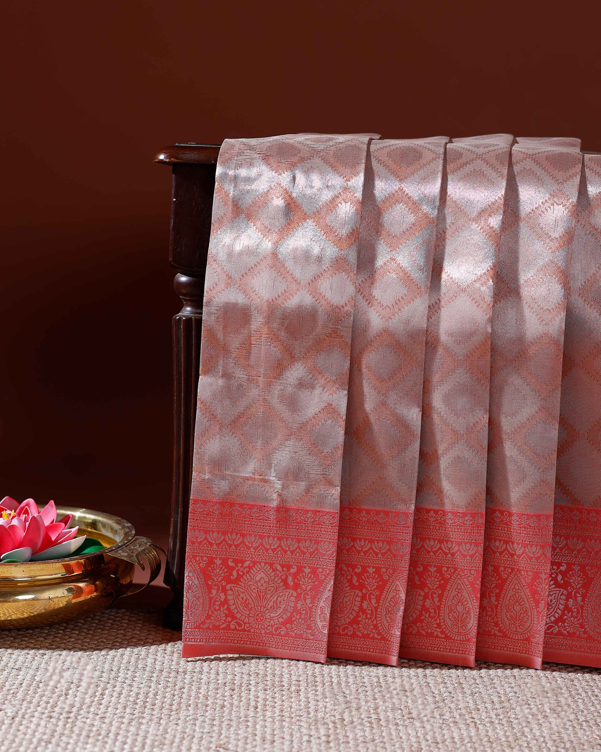 Elegant Litchi Silk Saree with Intricate Zari Woven Motifs and Contrasting Border - Brown