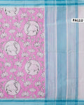 Elegant Mangalagiri Semi Chanderi Saree Intricate Floral and Animal Designs - Pink
