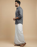 Elevate your traditional style with this men's grey shirt and white dhoti set, crafted from comfortable cotton