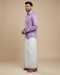 Elegant Men's Ethnic Full Sleeve Shirt & Dhoti Set with Traditional Border - Lavender